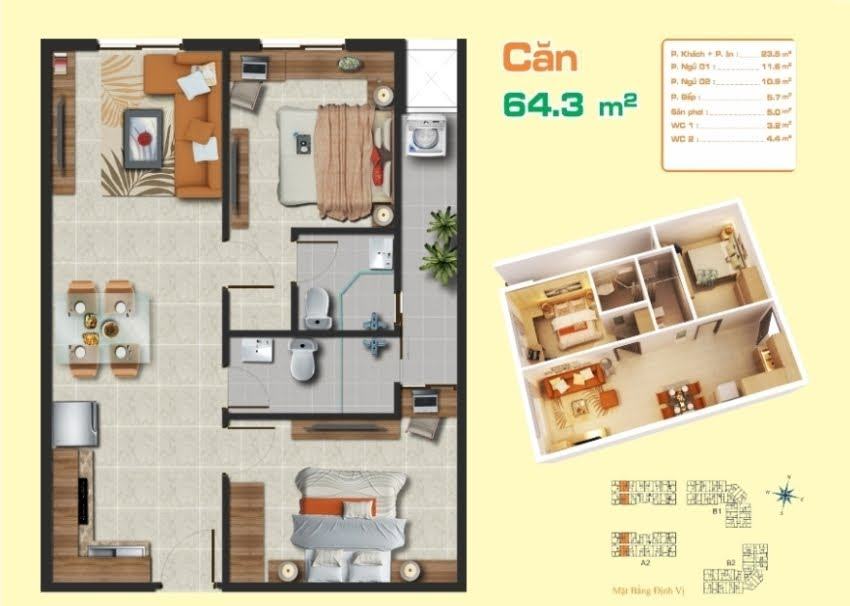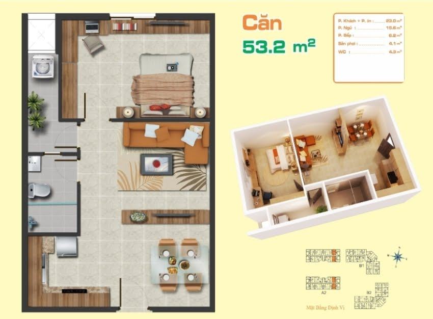 • Diện tích căn hộ: 53 – 80 m²