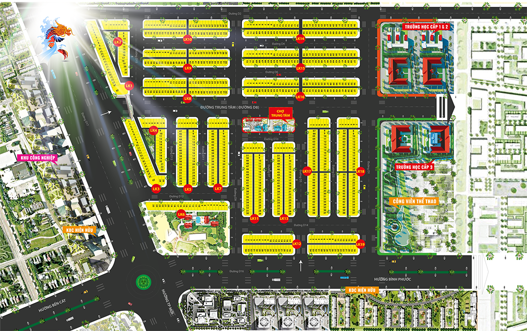 Dự án thuộc vị trí trung tâm, trọng điểm xung quanh các khu công nghiệp lớn của Bình Dương: Khu kỹ nghệ Singapore, KCN Bình Dương, KCN An Tây, KCN Việt Hương, KCN Mỹ Phước 1,2,3,4.