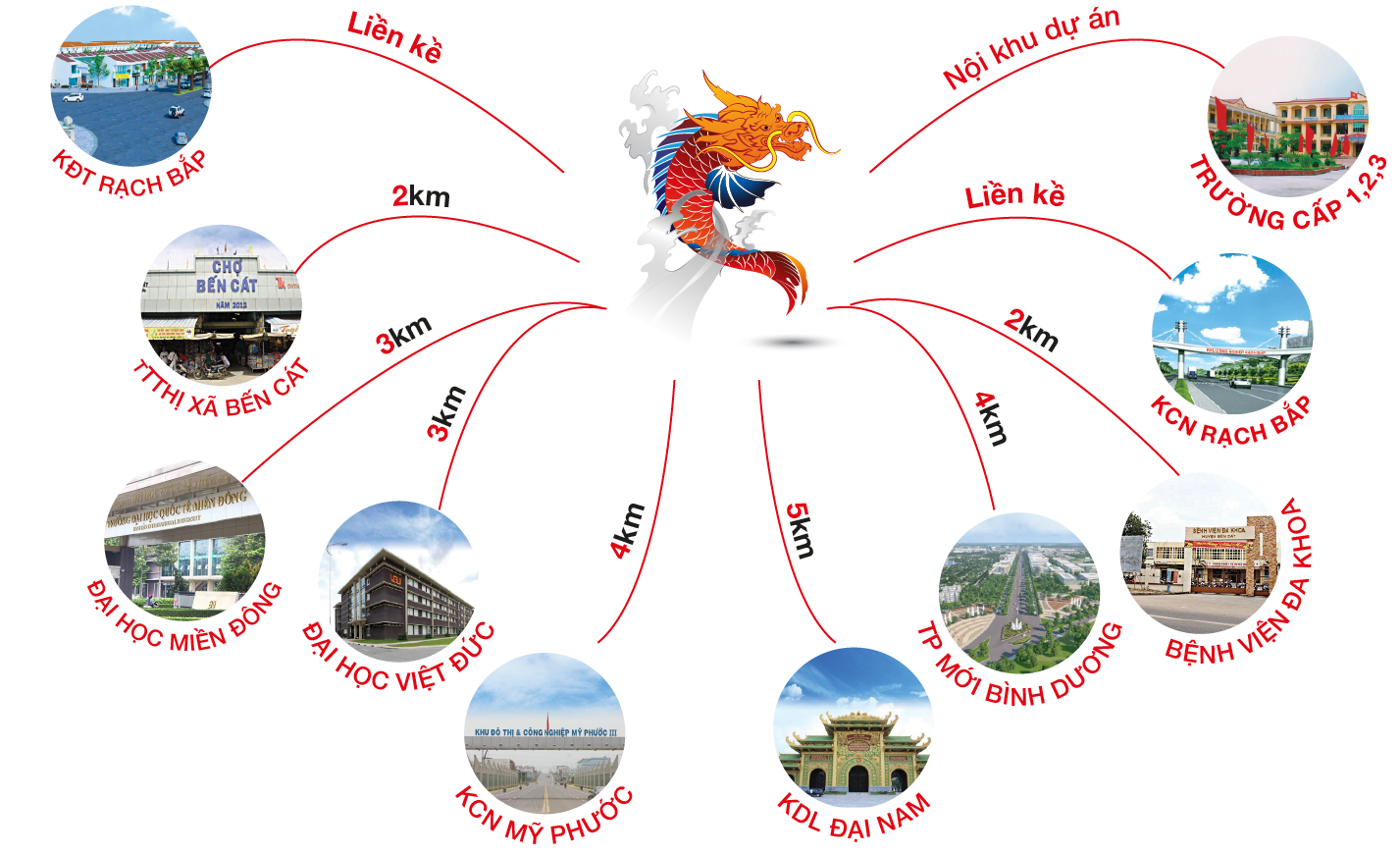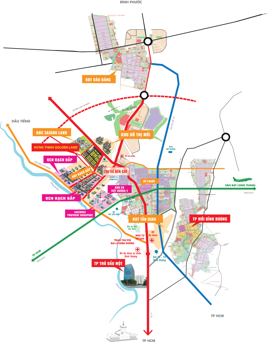 Tiếp giáp các trung tâm kinh tế lớn ở Bình Dương như Thành Phố Mới, Thủ Dầu Một, Bến Cát.