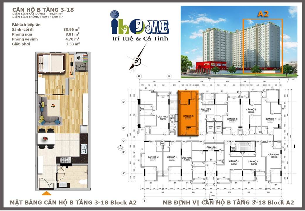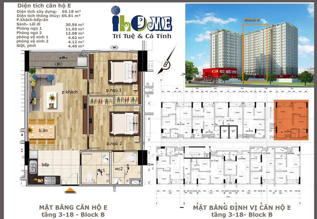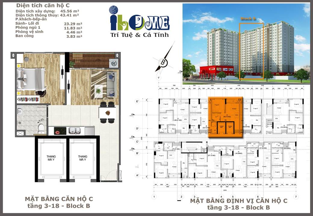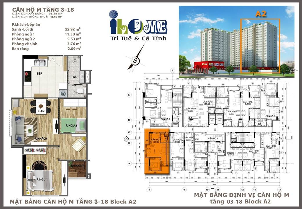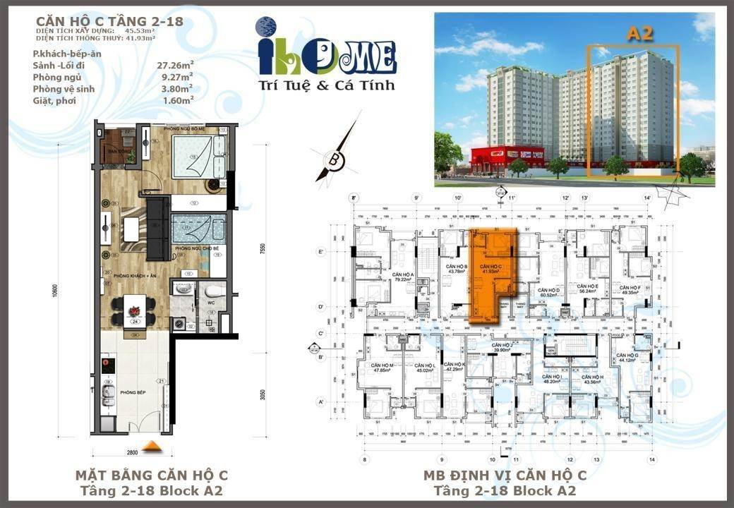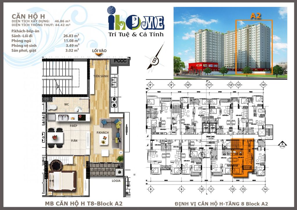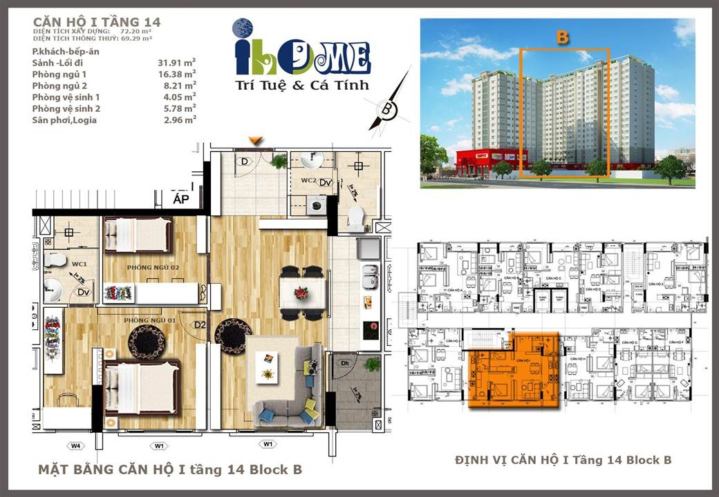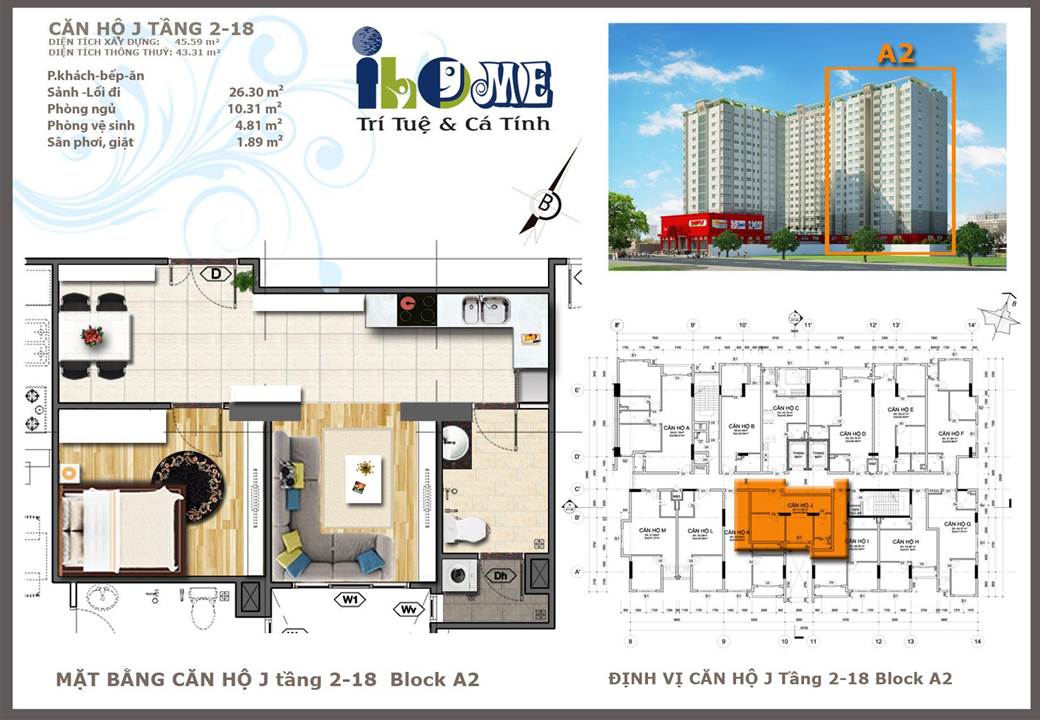 Căn hộ I Home được triển khai xây dựng tới tổng diện tích khu đất là 5.807,2 m2 trong đó diện tích sàn xây dựng tầng điển hình với quy mô là 738.5 m2 trong đó có mật độ xây dựng toàn khu là 62.3 %; mật độ xây dựng của khối tháp là 40%.