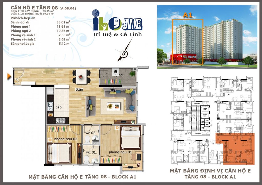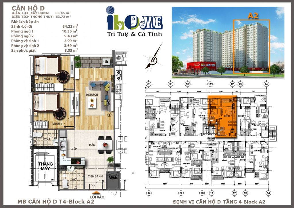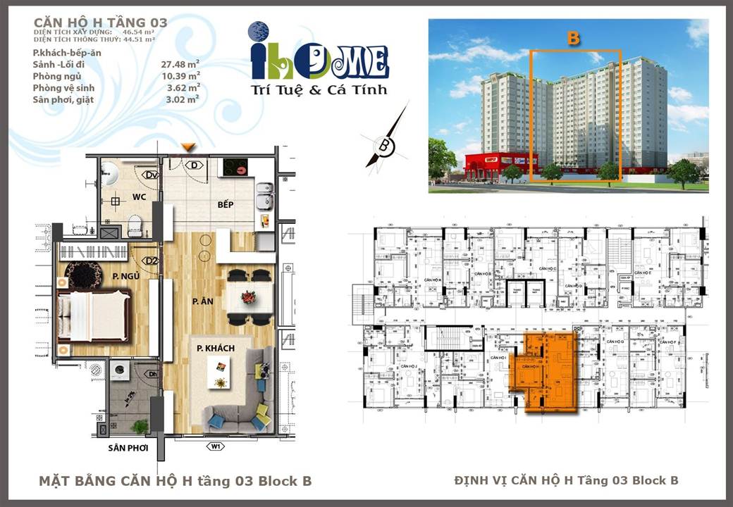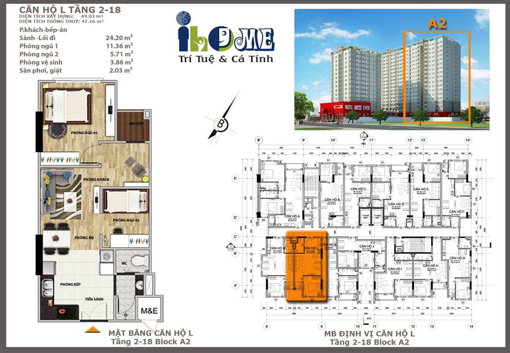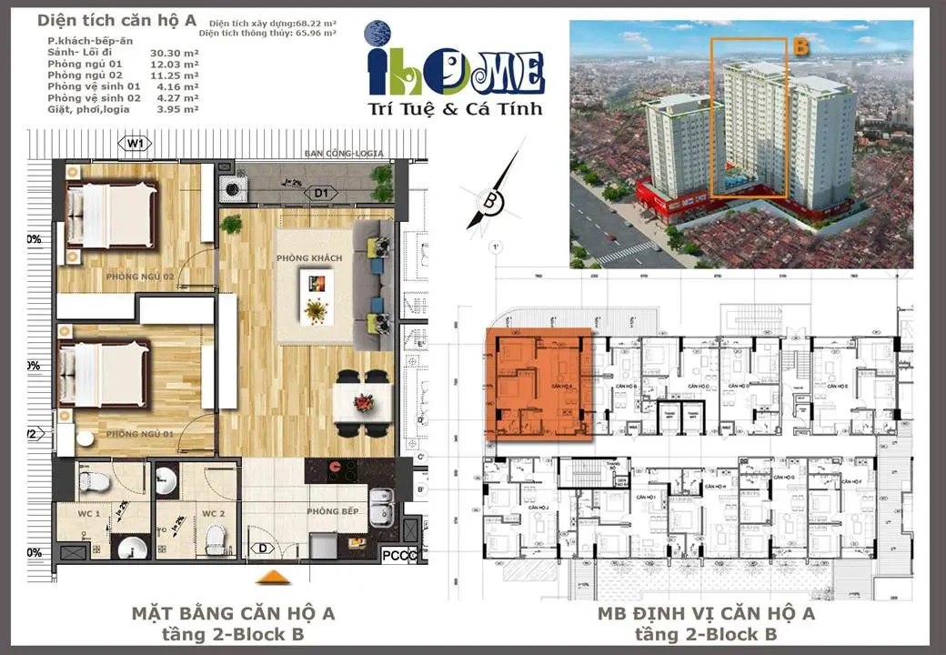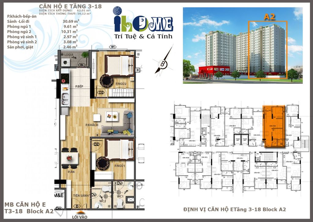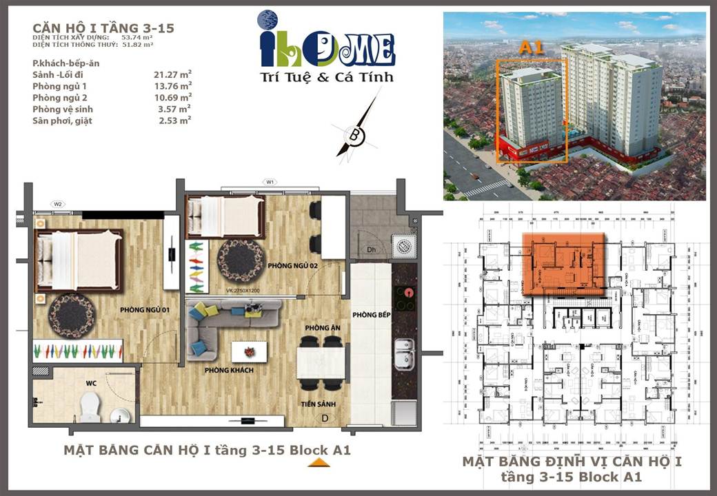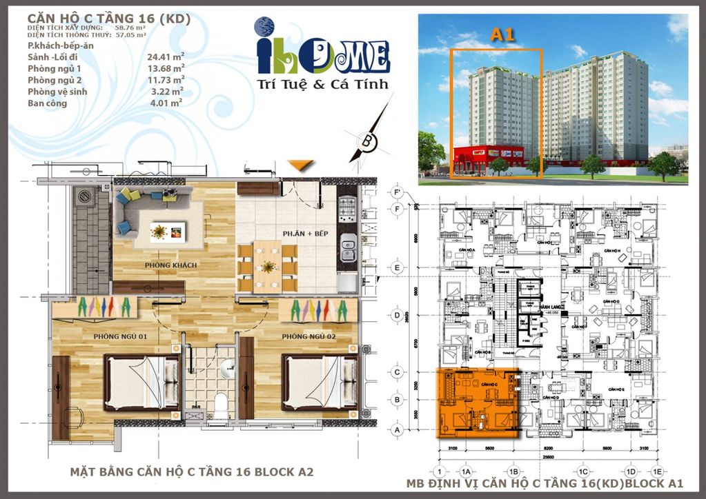Căn hộ I Home được triển khai xây dựng tới tổng diện tích khu đất là 5.807,2 m2 trong đó diện tích sàn xây dựng tầng điển hình với quy mô là 738.5 m2 trong đó có mật độ xây dựng toàn khu là 62.3 %; mật độ xây dựng của khối tháp là 40%.