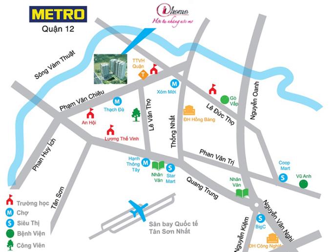 Tiện ích ngoại khu dự án I-HomNgoài ra, cư dân của dự án nhờ lợi thế nằm tại khu vực trung tâm hành chính quận Gò Vấp – TP Hồ Chí Minh đã khiến cho khu căn hộ I-Home nằm trong khu vực với hệ thống hạ tầng giao thông thuận tiện cho kết nối giao thông nhanh chóng với các tiện ích như: trung tâm văn hóa thể dục thể thao Gò Vấp; siêu thị; trung tâm thương mại BigC; trường học các cấp; ngân hàng…