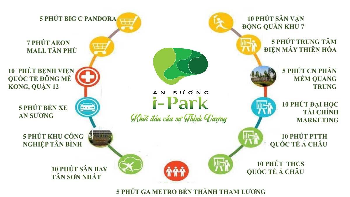 Dự án căn hộ I-Park An Sương toạ lạc tại vị trí đắc địa trong khu dân cư An Sương. Đây là khu đô thị hiện đại và đẳng cấp nhất tại Quận 12 với tổng diện tích 64 ha được đầu tư đồng bộ với cơ sở hạ tầng hoàn thiện, đầy đủ các tiện ích cao cấp như trường học, bệnh viện, trung tâm hành chính, chợ An Sương, siêu thị, khu công viên nước và công viên Trung Tâm rộng hơn 60.000m2…