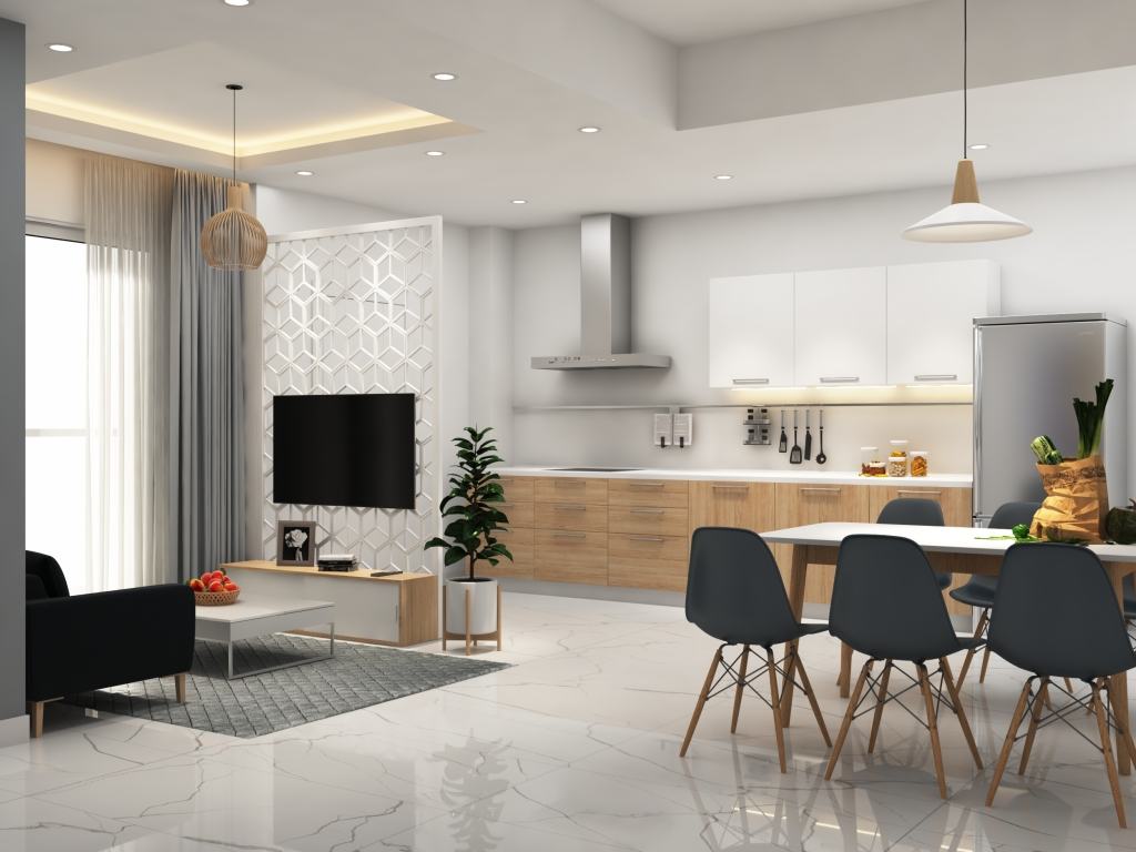 • Sàn phòng khách: Gạch bóng kính 600 x 600 mm.