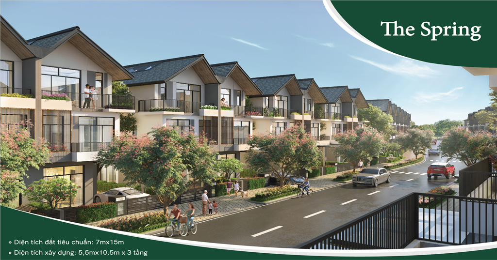 The Spring là dòng sản phẩm chiếm đa số trong dự án, với diện tích đất tiêu chuẩn là 7m x 15m, kích thước xây dựng 5,5m x 10,5m phù hợp với tài chính của các gia đình trẻ, năng động và thành đạt, các không gian sống được thiết kế và phân chia một cách thông minh, hợp lý.