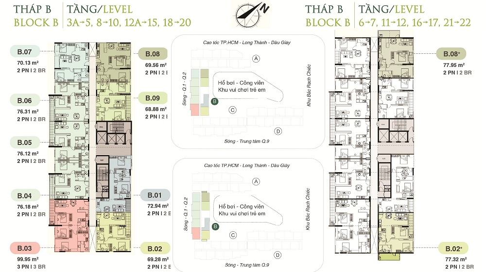 • 4 block A, B, C, D cao 25 tầng, bao gồm 1 tầng hầm • Tổng cộng có 867 căn hộ cao cấp với các diện tích: 47m2 ( 2PN-1WC), 69-75m2 ( 2PN-2WC) và 80 – 99m2 ( 3PN-2WC) |