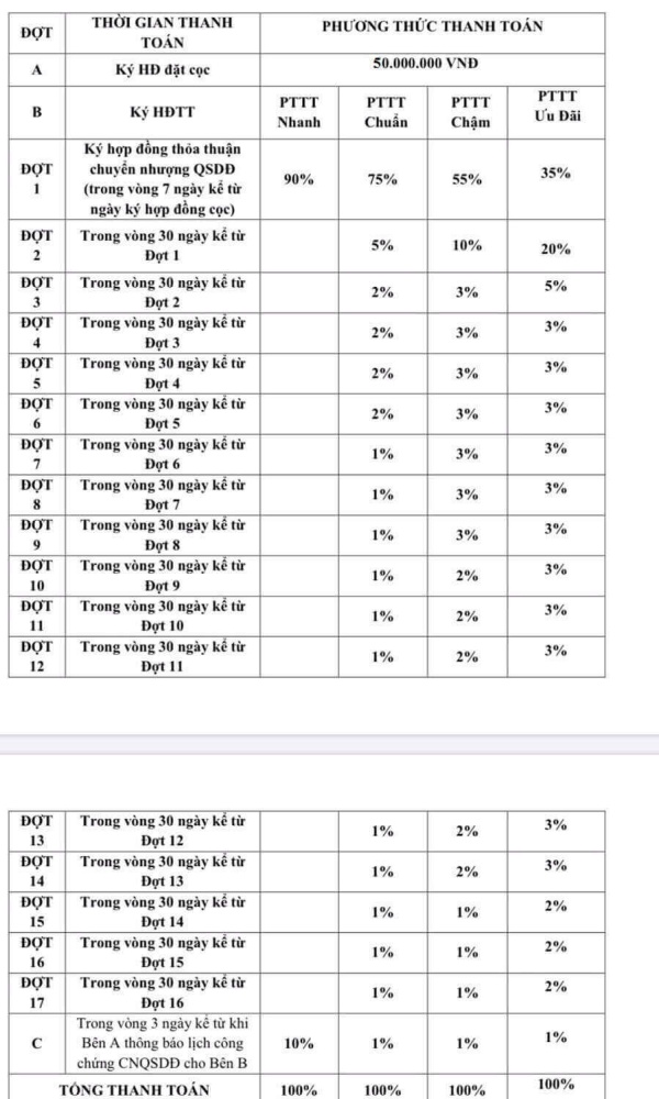 Phương thức thanh toán linh hoạt được chia làm nhiều giai đoạn.