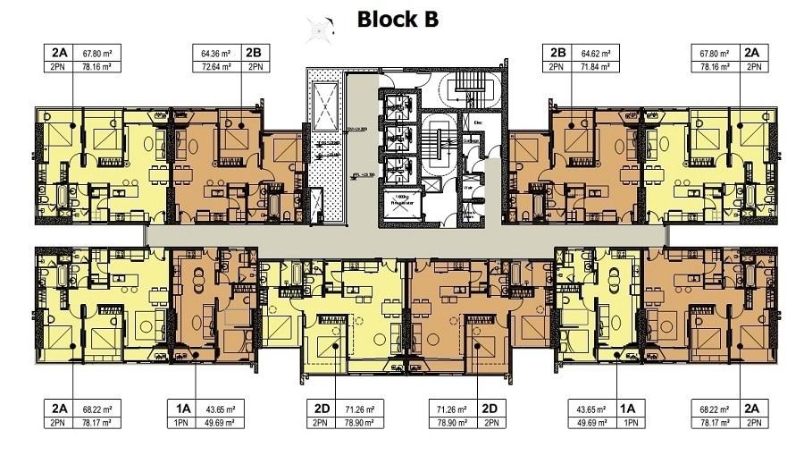 – Căn 1 phòng ngủ: 70m2 – 80m2