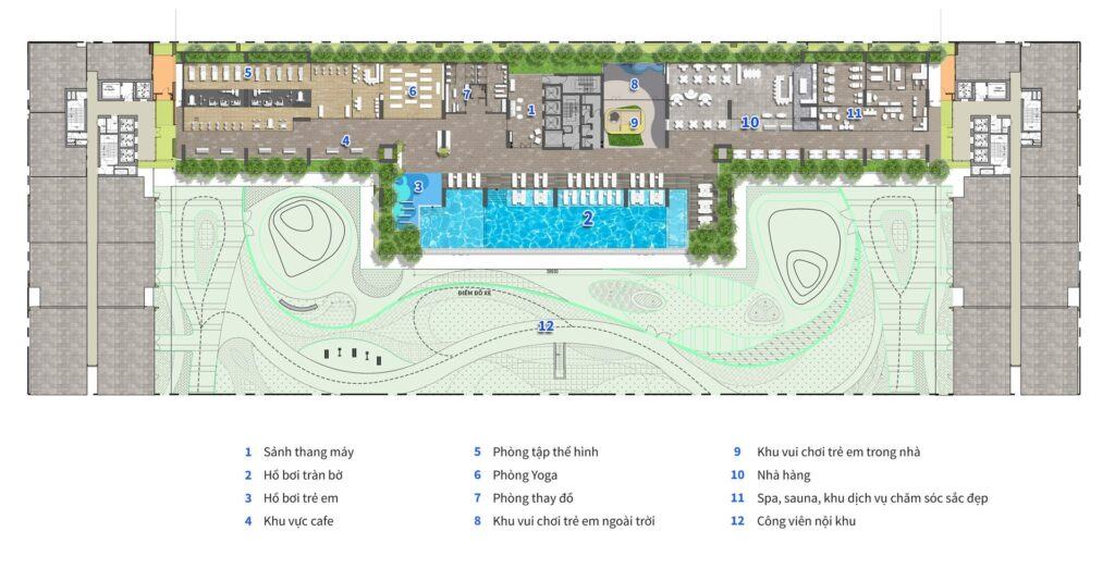 | Quy mô dự án | 1. Giai đoạn 1 (11.415m2): Gồm 3 tháp căn hộ chung cư cao cấp 30 tầng + Block A: 27.716,46 m2 + Block B: 18.331,12 m2 + Block C: 27.716,46 m2 2. Giai đoạn 2 (22.220m2 ): Gồm tòa trung tâm căn hộ dịch vụ thương mại 18 tầng và công viên cây xanh. + Diện tích khu Thương Mại – Dịch Vụ: 10.836,3m2. + Diện tích Hồ Bơi và Khu vực hồ bơi: 635 m2 (52m x 12,2m). |