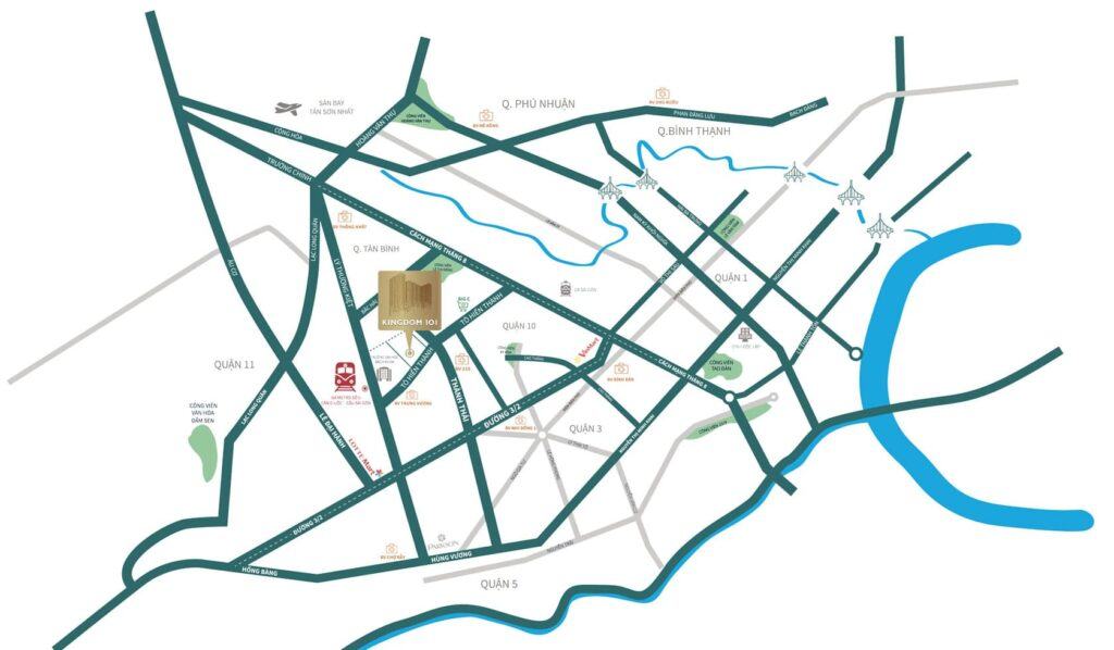 Từ dự án King dom 101 Quận 10 cư dân có thể di chuyển đến các quận huyện một cách dễ dàng, đồng thời tiếp cận hàng loạt các tiện ích ngoại khu hiện đại. Với địa thế đặc biệt, Kingdom Q10 vừa thuận lợi trong buôn bán giao thương, vừa thuận tiện trong di chuyển và an cư lạc nghiệp.