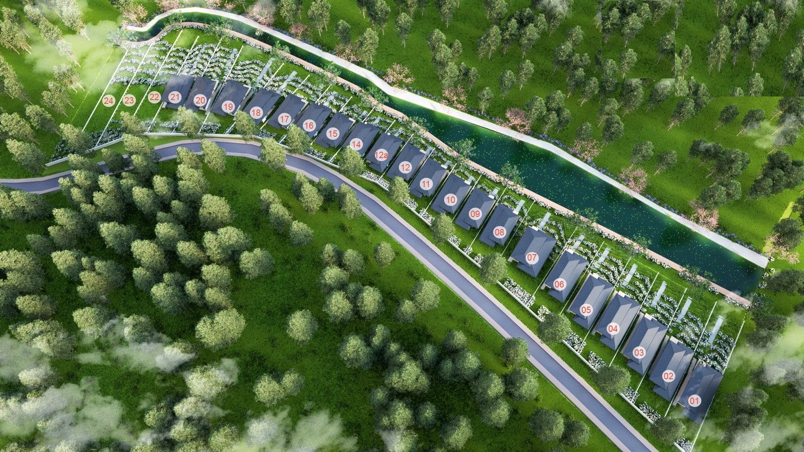 Dự án được quy hoạch trên tổng diện tích toàn khu rộng 4,5ha, phát triển ra thị trường 45 lô đất nền, với diện tích mỗi nền dao động từ 600m2 – 1200m2 (mỗi nền có tối thiểu 200m2 thổ cư). Với diện tích lớn và được xây dựng tự do, mục địch để khách hàng mua xây dựng biệt thự nghĩ dưỡng theo ý thích, ngoài ra còn có thể khai thác cho thuê khi xây dựng theo mô hình homestay.