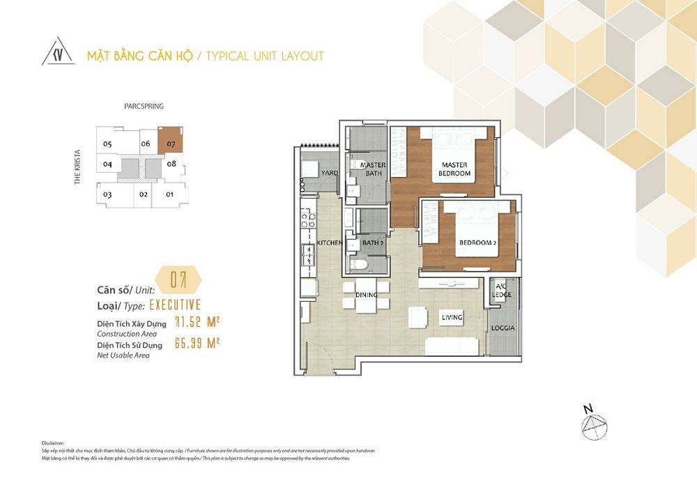 Căn 2PN Kris Vue, diện tích 69m2 có giá khoảng 3,1 tỷ.