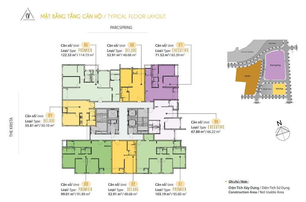 Các căn hộ của dự án là những sản phẩm thiết kế đảm bảo sự riêng tư, theo đúng tiêu chuẩn cao cấp, đem lại cho những gia đình trẻ giải pháp an toàn, an cư hoàn hảo với 3 loại hình căn hộ từ 1 – 3 PN và Deluxe, Executive và Premier.