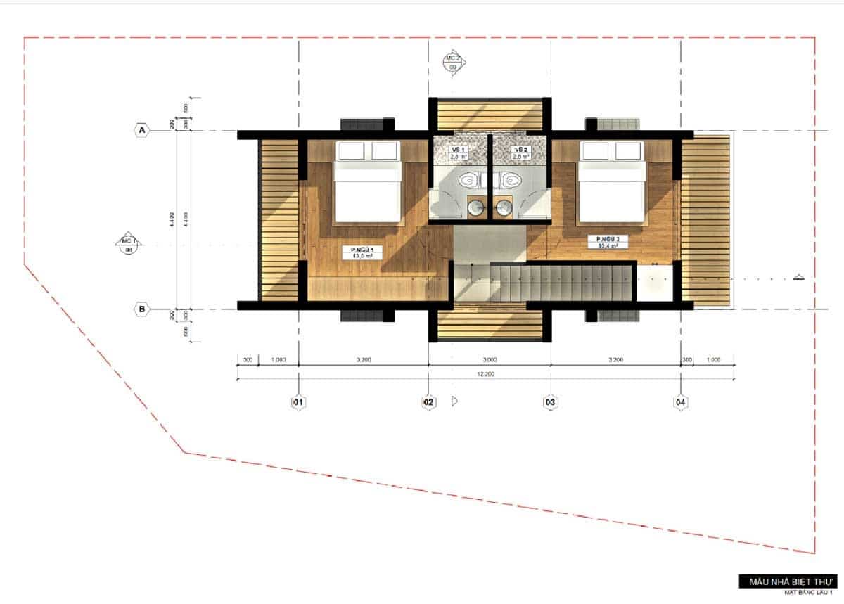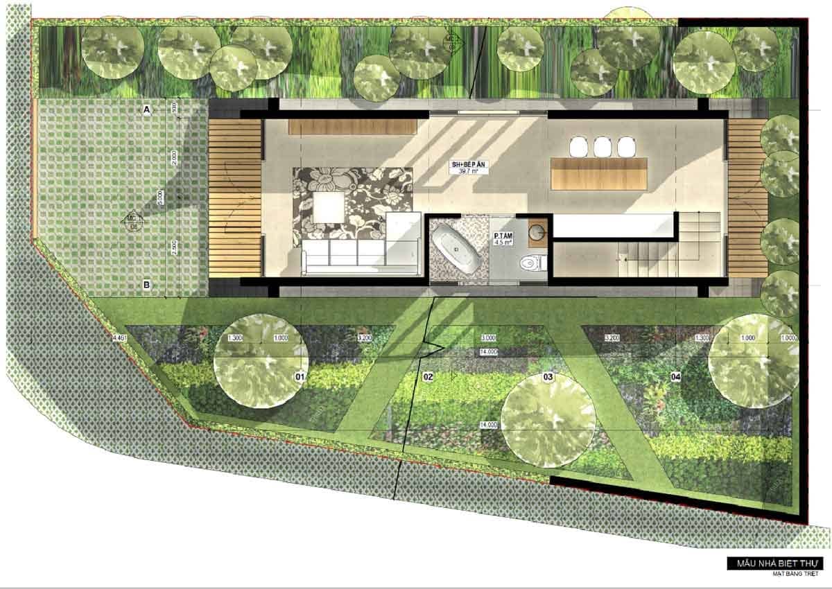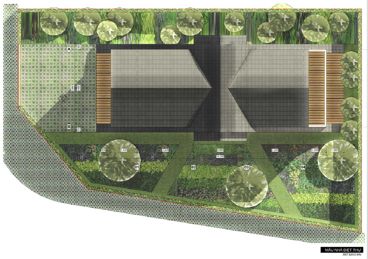 Biệt thự vườn: Diện tích từ 160 – 250 m2- Chiều ngang nền đất từ 8 – 12m Biệt thự sinh thái: Diện tích từ 500 – 800 m2, Chiều ngang nền đất từ 20 – 30m |