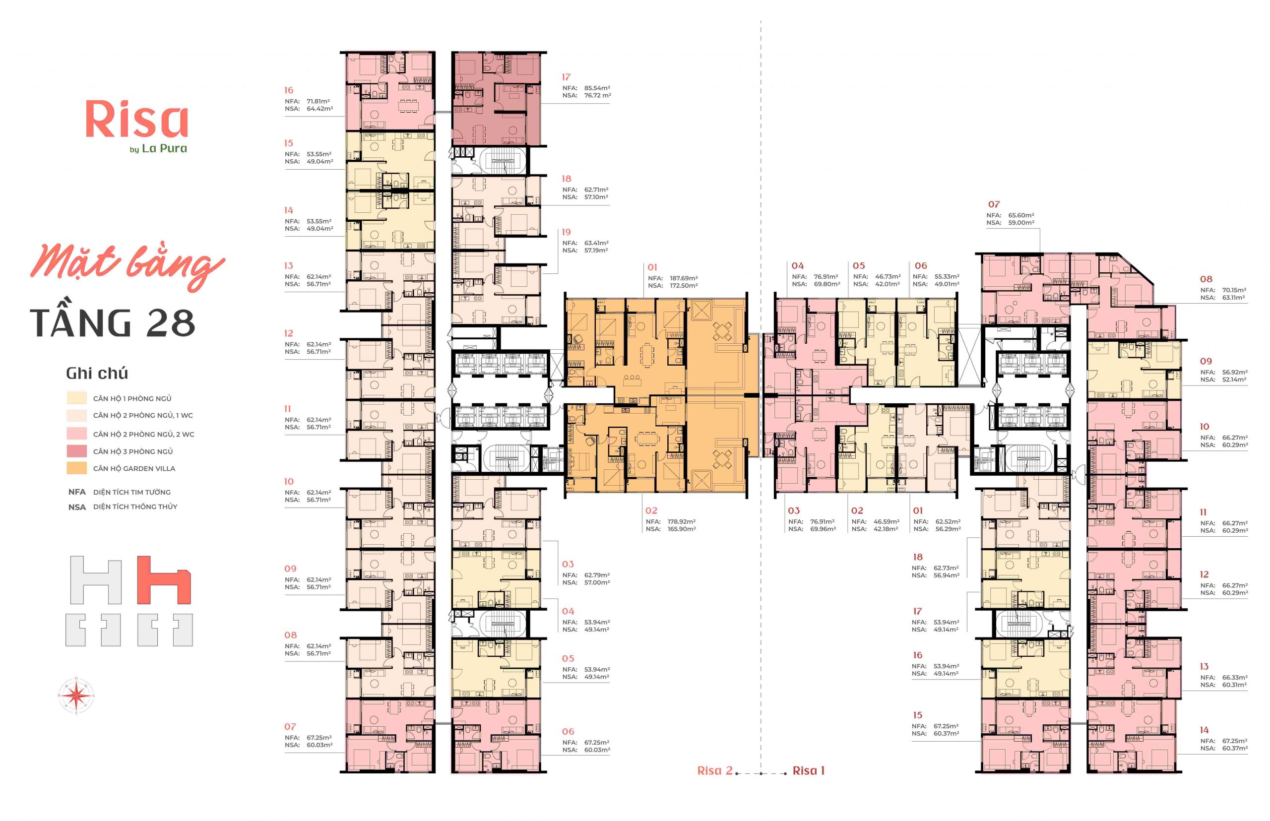 Mỗi tầng điển hình được thiết kế với mật độ chỉ khoảng 16 căn/sàn kết hợp hệ thống thang máy tốc độ cao, vừa tạo không gian sinh hoạt cộng đồng thoáng đãng, vừa giữ được sự riêng tư tuyệt đối. Các dòng sản phẩm chính bao gồm:
