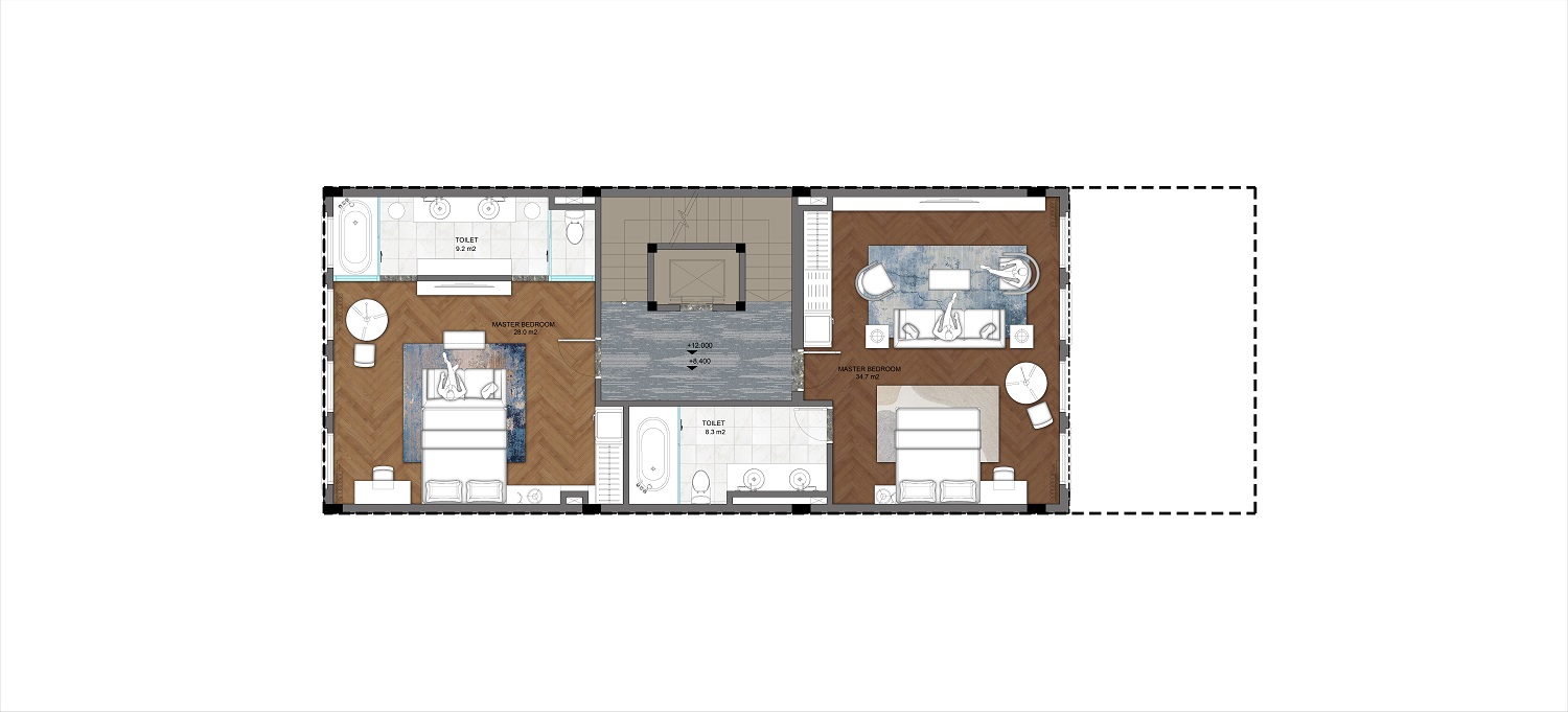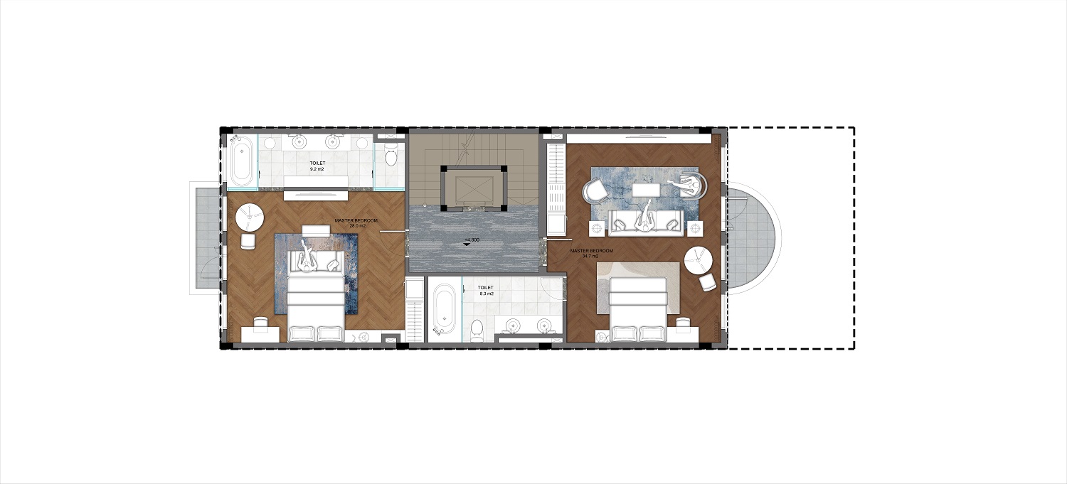 Mang triết lý về sự cân bằng, 100% ngôi nhà tại La Queenara đều sở hữu 2 mặt đường, bể bơi và khu vườn riêng. Phía trước giáp các trục đại lộ sầm uất, phía sau ẩn khuất trong những khu vườn châu Âu soi bóng xuống bể bơi. Nhờ thiết kế độc đáo, chủ nhân vừa có thể sử dụng mặt tiền cho mục đích kinh doanh cửa hàng, văn phòng, vừa có thể sử dụng mặt sau làm khách sạn hoặc không gian nghỉ dưỡng riêng tư cho cả gia đình.
