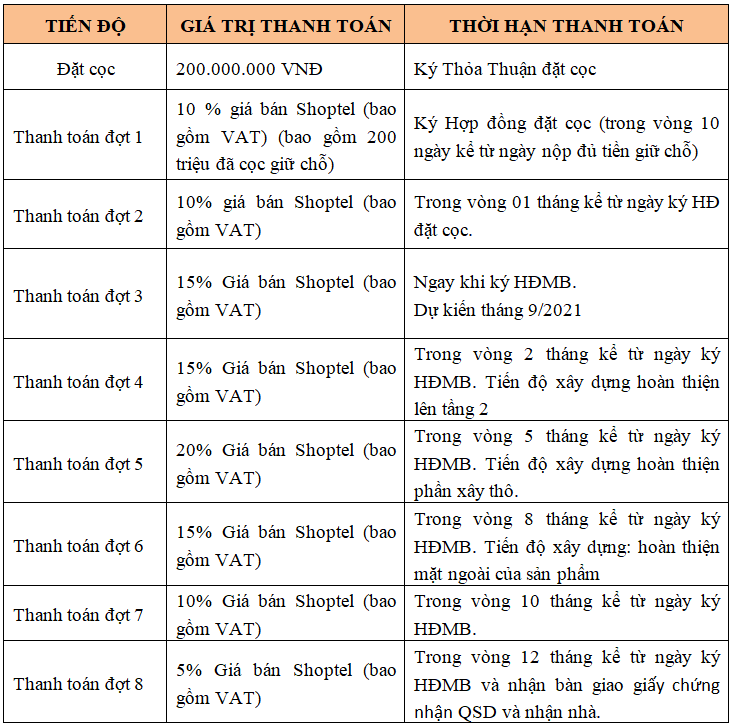 Gíá bán shoptel từ 7-12 tỷ/căn tùy diện tích.