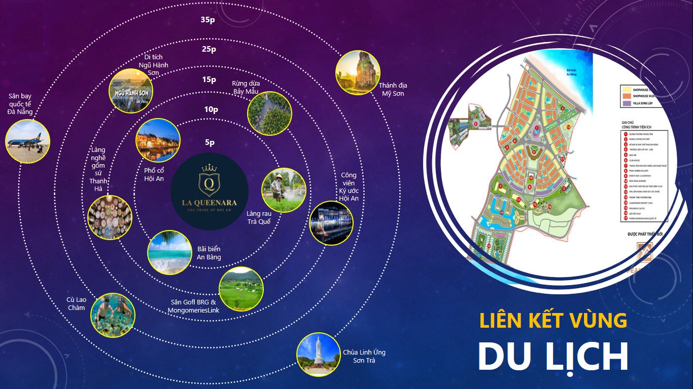 Trên vùng đất di sản của đô thị cổ đặc biệt nhất Việt Nam, La Queenara được định vị là khu đô thị nghỉ dưỡng phức hợp có quy mô lớn nhất miền Trung, sở hữu nhiều tiện ích chưa từng có với hơn 200 tiện ích nghỉ dưỡng 5 sao cùng bến thuyền và bãi biển riêng.