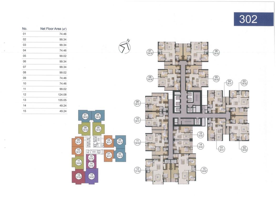 • Các căn hộ chung cư cao cấp từ 2 đến 3 phòng ngủ, và Penhouse diện tích đa dạng từ: 49m2 – 74m2 – 99m2 – 124m2 – 135m2
