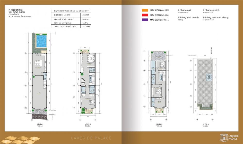 Hiện chủ đàu tư đang đầu tư triển khai 98 căn Nhà phố thương mại tại Lakeside Palace Đất Xanh Đà Nẵng, với diện tích đất 5x 25 m (125 m2), diện tích sàn 270m2. Tất cả các căn đều sở hữu view hồ sinh thái, và mặt tiền đường 35m.