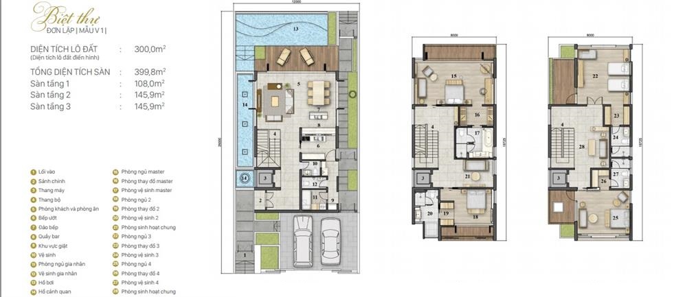 Dự án chỉ cung cấp cho thị trường số lượng giới hạn 20 biệt thự trong đó có 16 biệt thự đơn lập và 4 biệt thự song lập với diện tích khác nhau. Khách hàng có thể lựa chọn các căn biệt thự với loại hình đơn lập, song lập có diện tích thiết kế như sau: