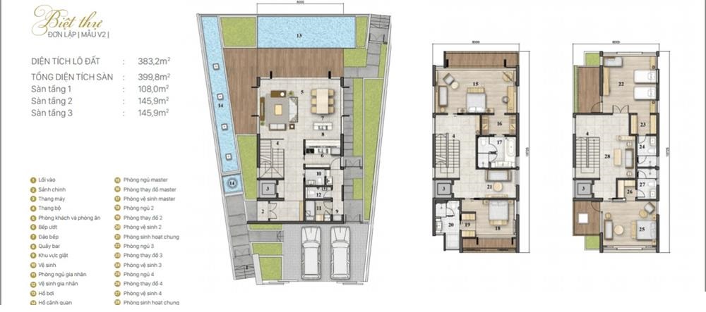 | Quy mô dự án | 20 biệt thự ven sông, trong đó có 16 biệt thự đơn lập và 4 biệt thự song lập. |