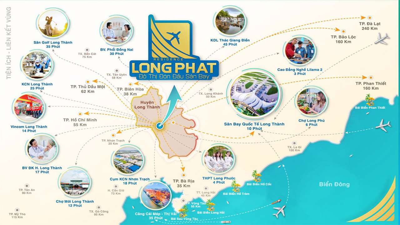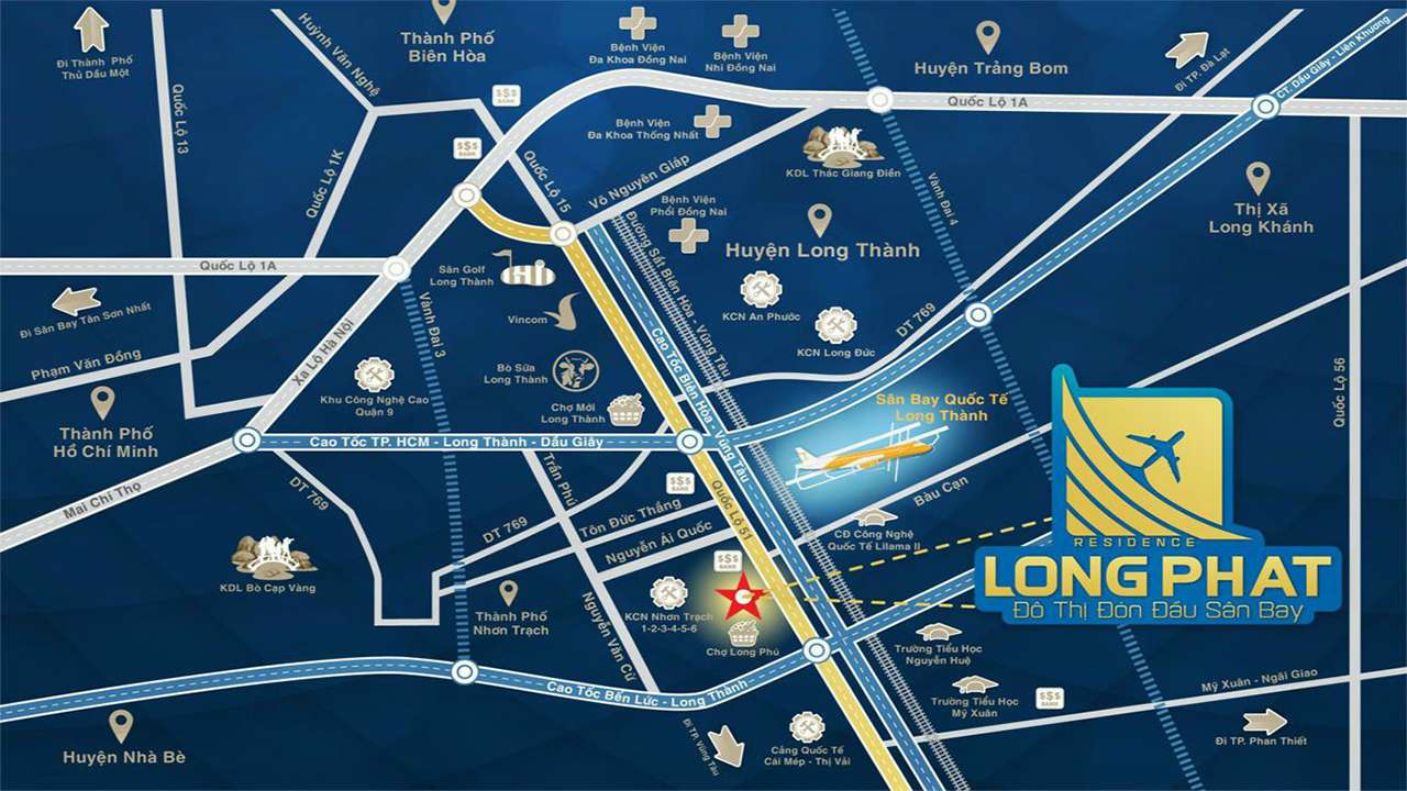Khu dân cư Long Phát Residence tọa lạc tại “vị trí kim cương” gần kề sân bay quốc tế Long Thành đang được xây dựng. Với định hướng trở thành khu đô thị sân bay với nhiều khu vực liền kề, Long Thành sẽ là huyện được hưởng lợi khá lớn từ hệ thống giao thông cũng như quá trình nâng cấp đô thị của Đồng Nai. Long Phát Residence sau khi hoàn thành, sẽ mang lại một khu dân cư mới, với chuỗi tiện ích và hạ tầng nội khu được quy hoạch hoàn thiện đến Quý khách hàng.