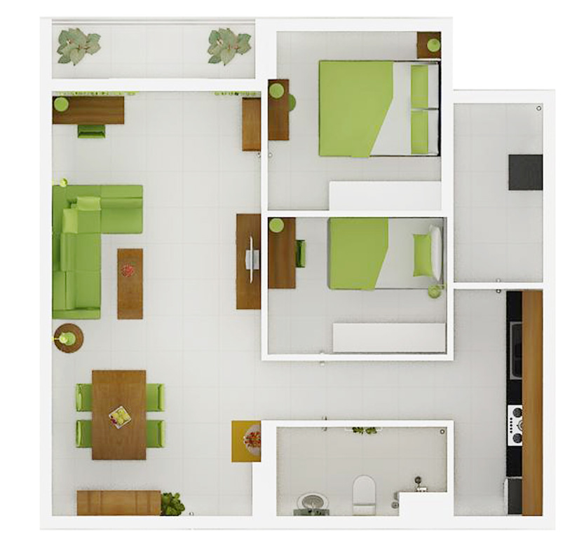 Mọi căn hộ đều được bố trí theo hình chữ nhật, có ban công rộng lớn, thiết kế phù hợp với mọi nhu cầu của cư dân với không khí trong lành, thông thoáng, ánh sáng hài hòa cùng thiên nhiên có tầm view nhìn đắt giá chưa từng có cùng diện tích dao động trong khoảng từ 51,68 m2 – 85,76 m2.