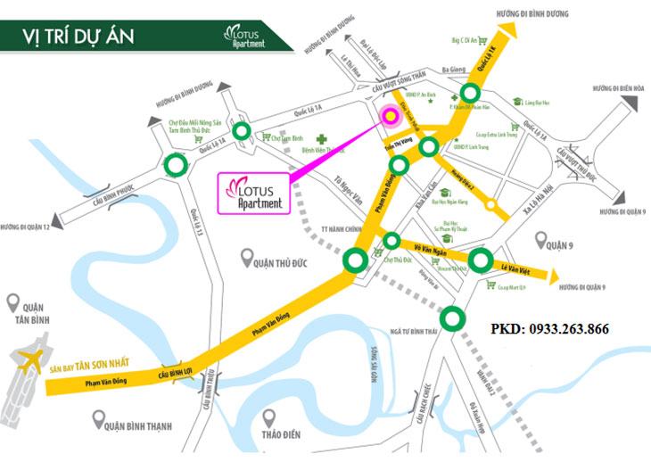 Căn hộ Lotus Apartment Thủ Đức sở hữu một vị trí đắc địa, nằm liền kề Đại lộ Phạm Văn Đồng, tuyến đường giao thông chính, rộng lớn và hiện đại, quan trọng bậc nhất của địa bàn quận Thủ Đức, kết nối thuận tiện với những khu vực còn lại tại Thành phố.