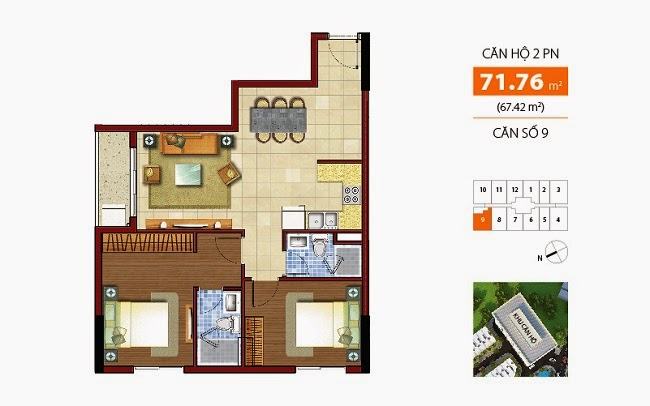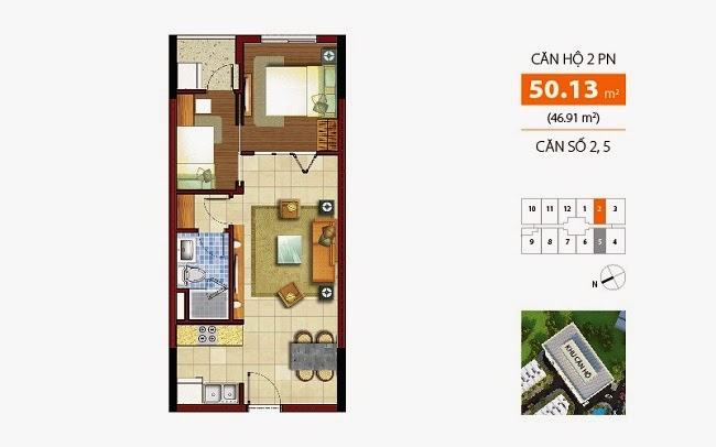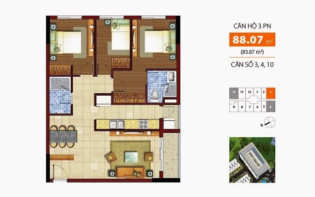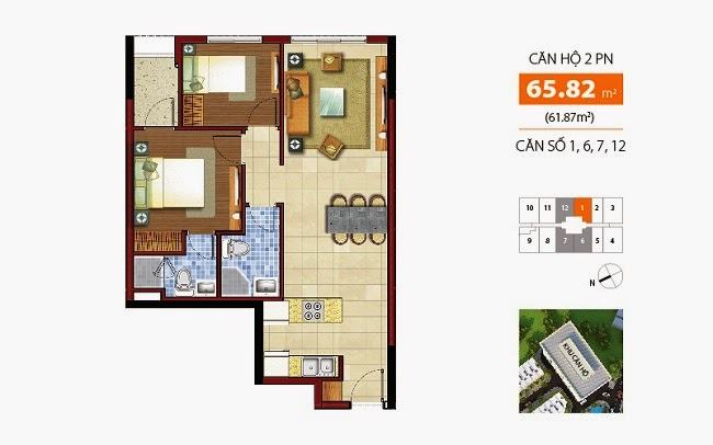 + Khu căn hộ: 2PN 50m2 – 75m2, 3PN 88m3