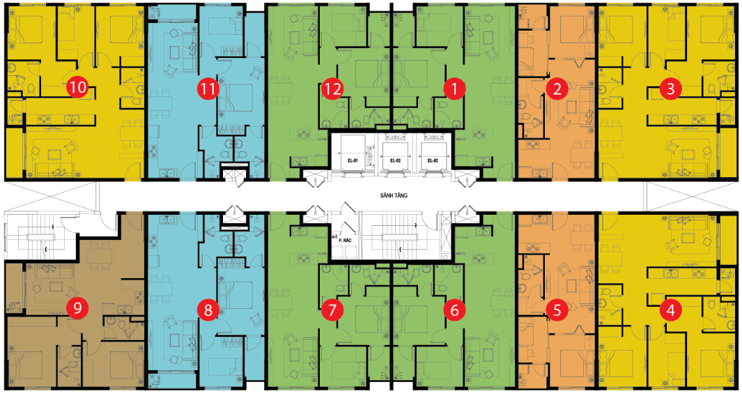 + Khu căn hộ: Tháp E cao 12 tầng
