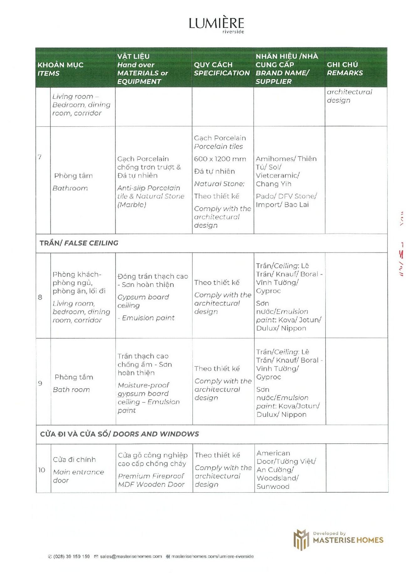 NỘI THẤT BÀN GIAO CĂN HỘ LUMIERE RIVERSIDE