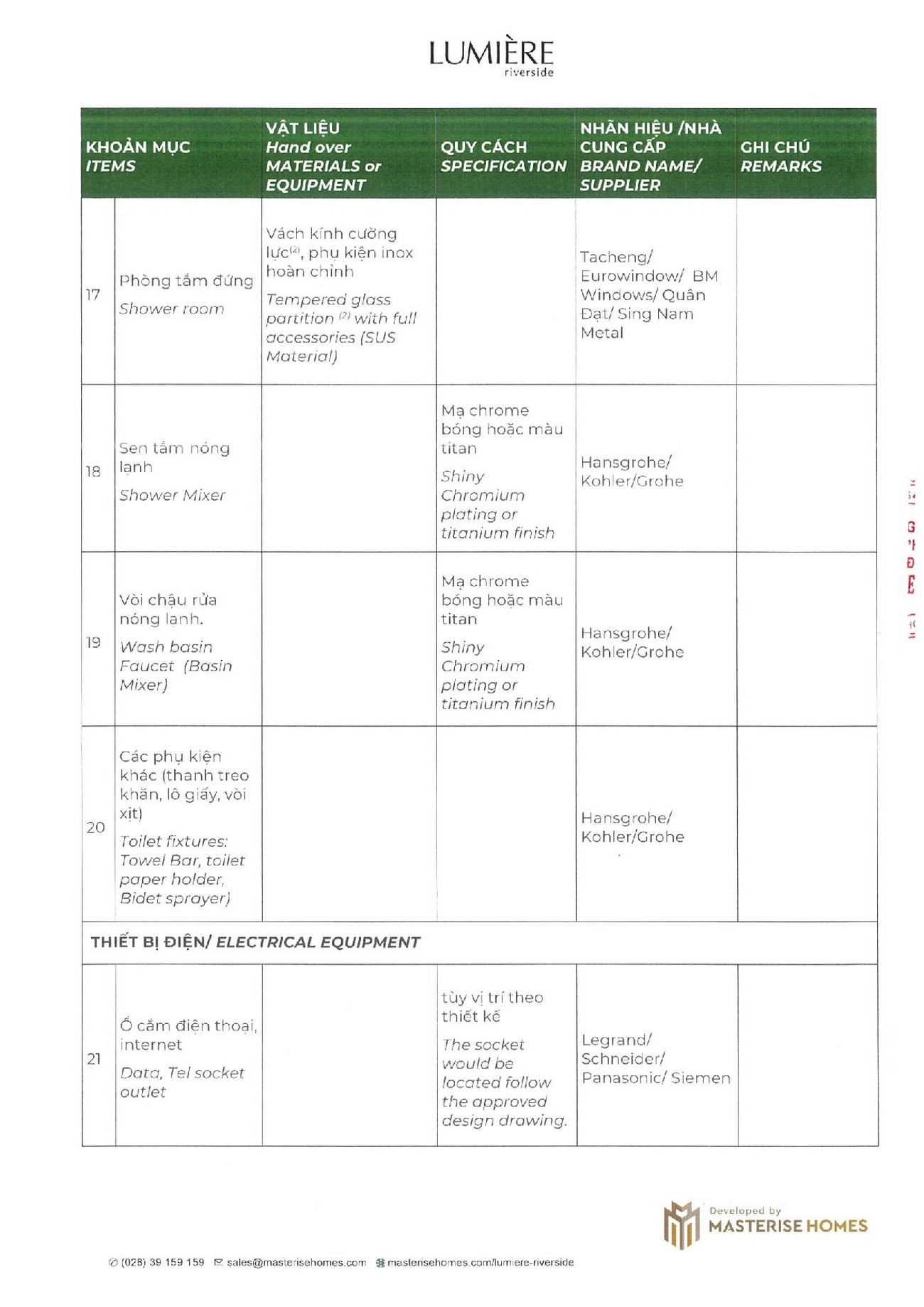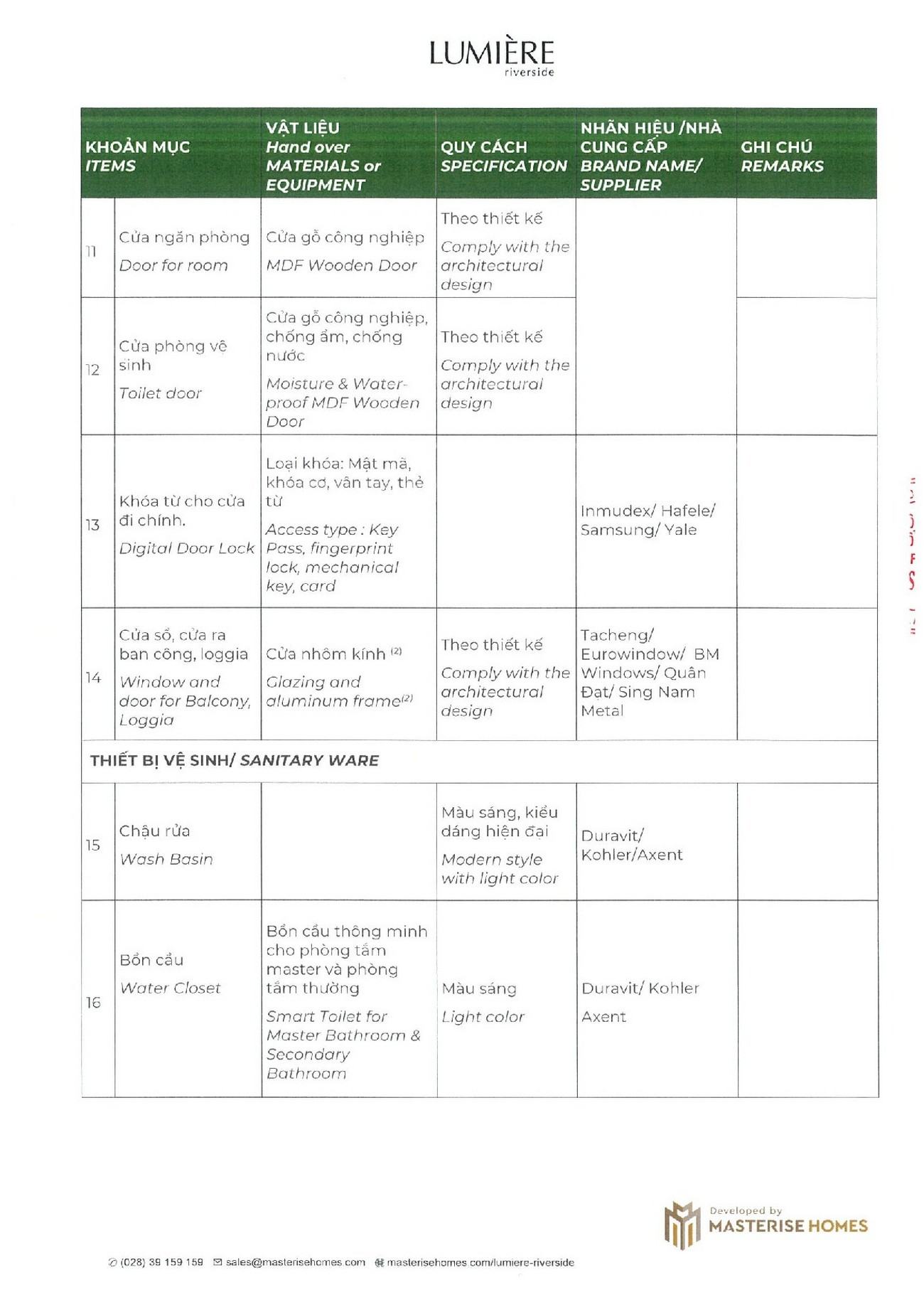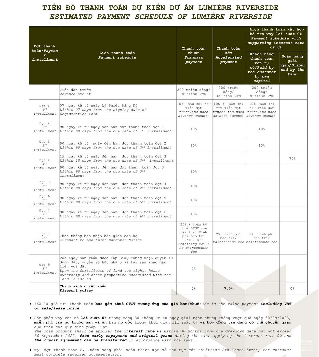 BẢNG GIÁ VÀ PHƯƠNG THỨC THANH TOÁN LUMIERE RIVERSIDE