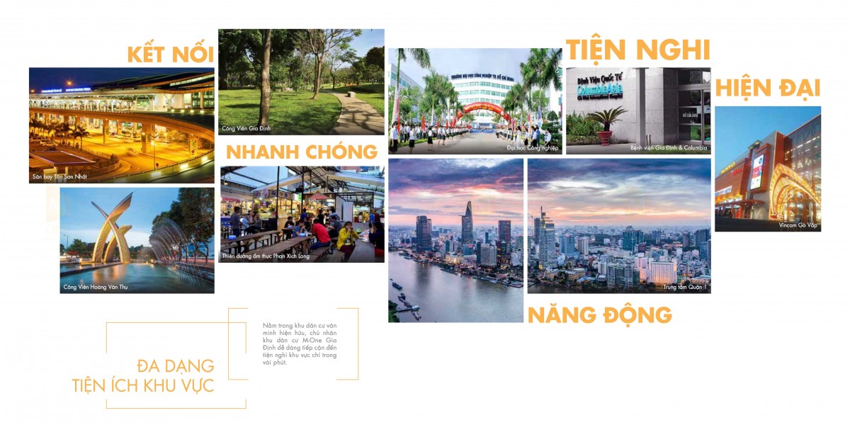 | Tiện ích M One Gia Định Quận Gò Vấp | Trường mầm non và Trường Tiểu học, Công viên , ,Trung tâm thể dục thể thao (gym, spa, yoga…), Quảng trường, Vườn nướng BBQ, khu ẩm thực, thư viện, phòng sinh hoạt chung, đường chạy bộ, bể bơi… |