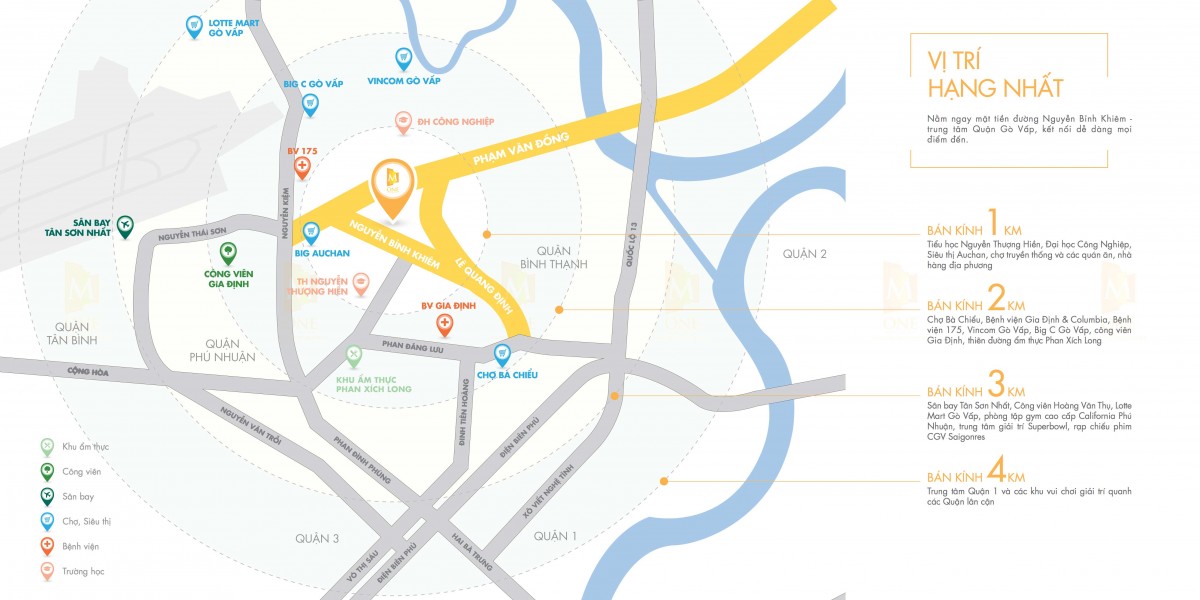 M One Gia Định với vị trí hạng nhất nằm ngay mặt tiền đường Nguyễn Bỉnh Khiêm – trung tâm Quận Gò Vấp, kết nối nhanh chóng đến Quận 1, các Quận lân cận, sân bay Tân Sơn Nhất cùng tiện ích thương gia phong phú từ khu dân cư hiện hữu, sở hữu ngay căn hộ M-One Gia Định để tận hưởng cuộc sống tiện nghi và hiện đại với giá hợp lý nhất.