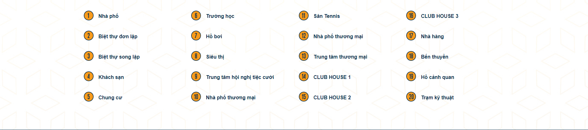 – Diện tích nhà phố thương mại, biệt thự song lập, biệt thự đơn lập: 5x18m, 5x20m, 6x18m, 6x20m, 6x25m cho đến 7x20m, 10x20m, 10x25m