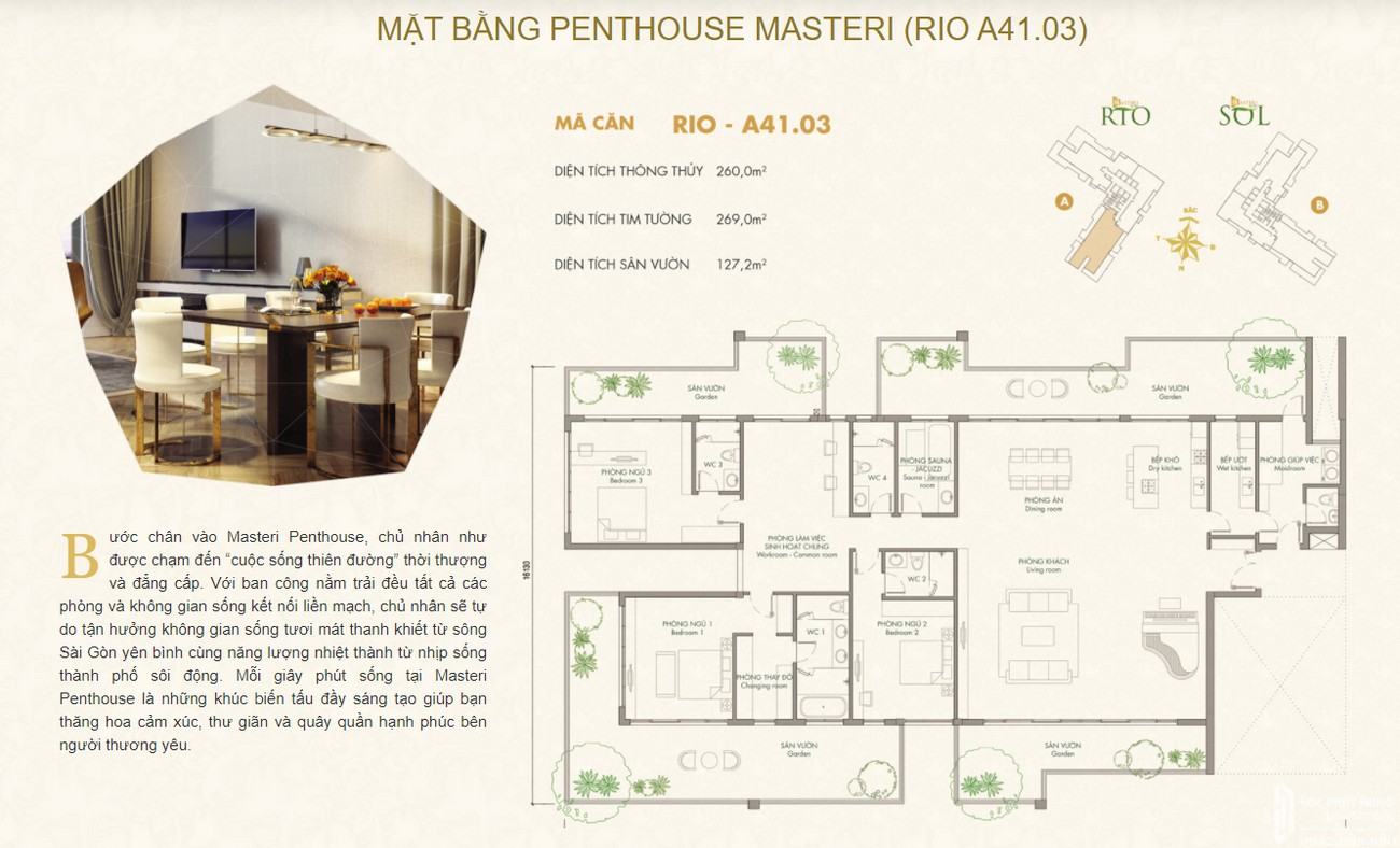 Hai toà tháp Rio và Sol kiến tạo nên một biểu tượng sống khác biệt, hài hoà và độc đáo. Nếu Rio là biểu trưng của phong cách sống xanh, tràn ngập hơi thở từ thiên nhiên thì Sol thu hút nguồn năng lượng mới từ ánh bình minh bừng sáng. Masteri An Phú mang hơi thở của thành thị sôi động để tạo thêm niềm hứng khởi, đồng thời nuôi dưỡng những giá trị tâm hồn và mở ra cuộc sống xanh an nhiên hạnh phúc.