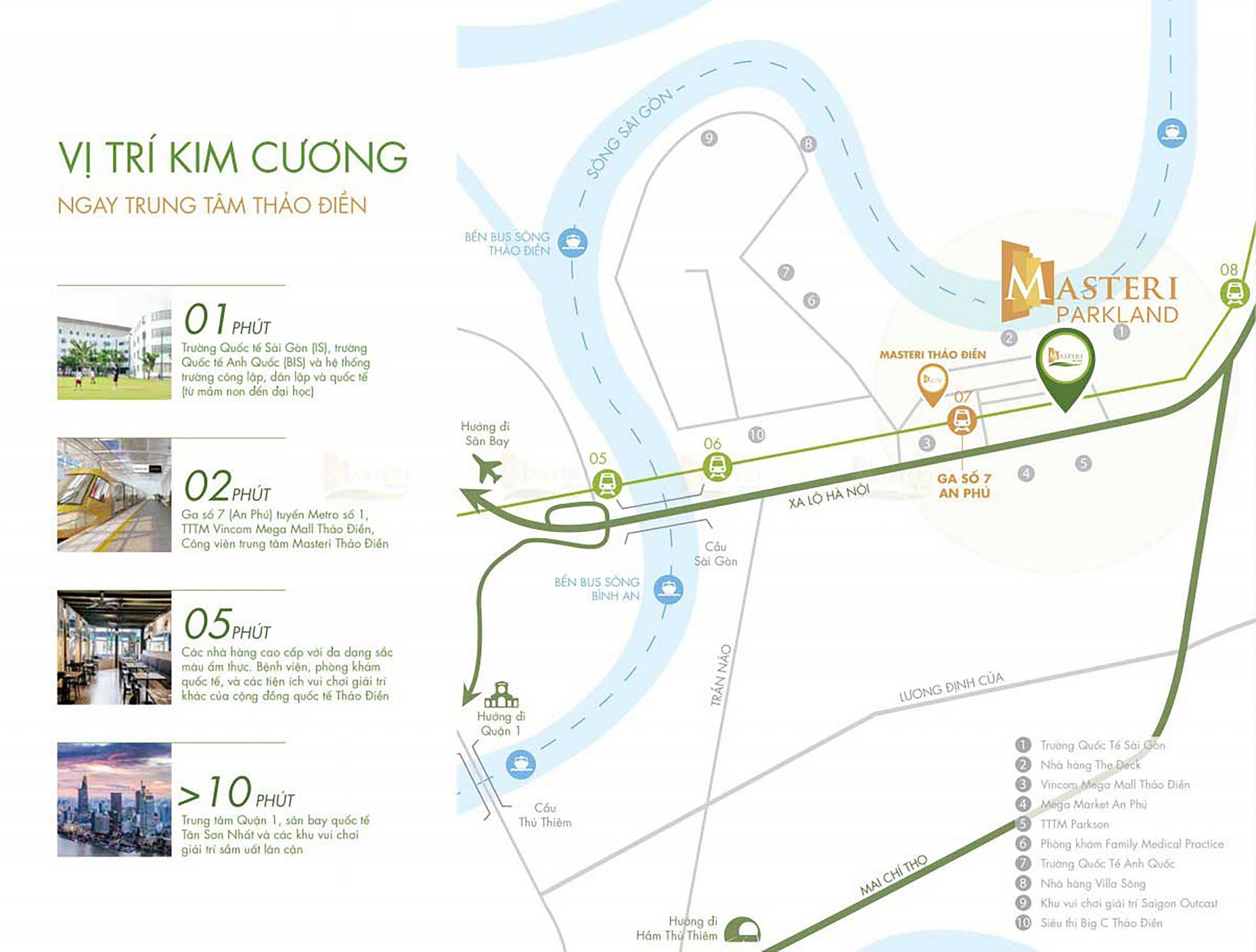 Vị trí địa chỉ dự án căn hộ Masteri An Phú sở hữu vị trí kim cương Thảo Điền kết nối hoàn hảo đến mọi khu vực trung tâm thành phố và sân bay quốc tế Tân Sơn Nhất với đa dạng phương tiện, từ xe máy, ô tô cho đến tuyến metro số 1 Bến Thành – Suối Tiên hay tuyến buýt đường sông và di chuyển đến các tỉnh thành lân cận như Vũng Tàu, Bình Dương bằng hệ thống giao thông hiện đại.