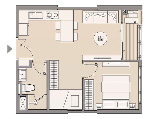 Căn hộ 1 phòng ngủ 41.57 – 48.01 m2 1.9 – 2.7 tỷ