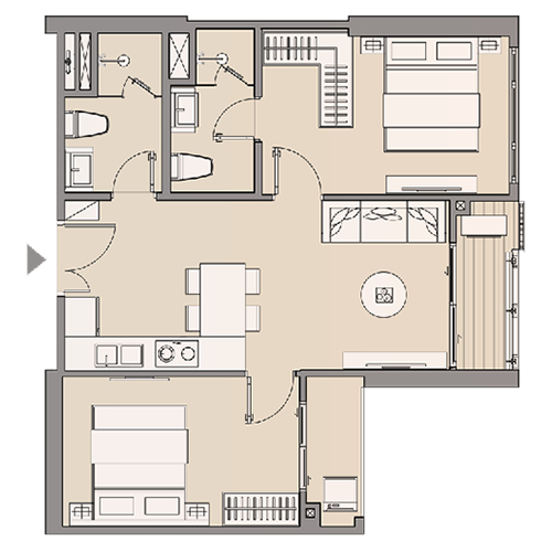 Căn hộ 2 phòng ngủ 59 m2