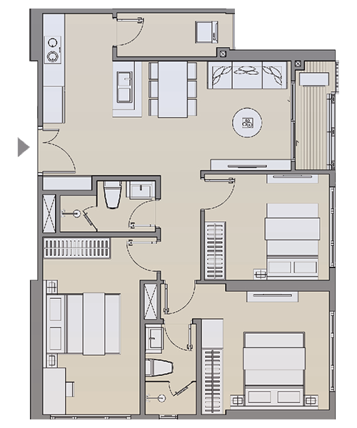 Căn hộ 3 phòng ngủ 79 m2