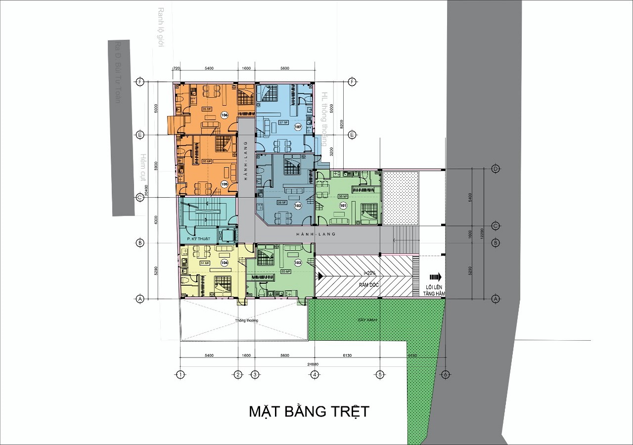 MD Home Building nằm trên tổng diện tích đất 950 m2, dự án bao gồm 3 block cao 6 tầng và 1 tầng hầm, với tổng số 52 căn. Theo thiết kế, loại căn 1 phòng ngủ diện tích từ 33 m2 – 37 m2 (bố trí tại tầng 1 và tầng 2), loại căn 2 phòng ngủ diện tích từ 55 m2 – 56 m2 (bố trí tại tầng 3 và tầng 4).
