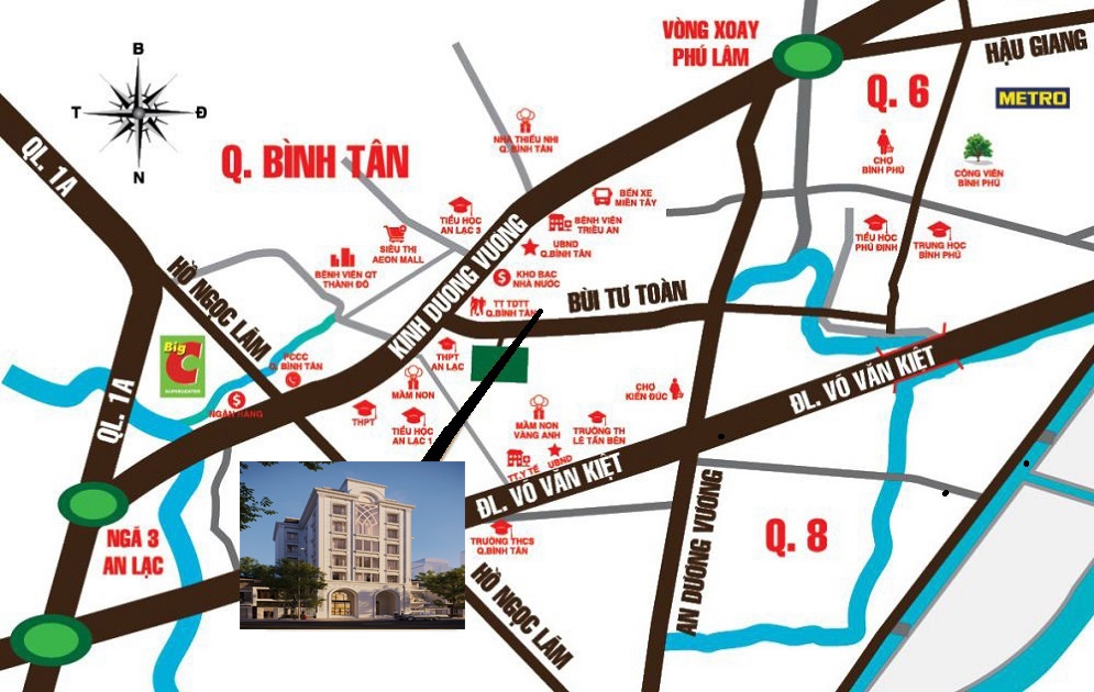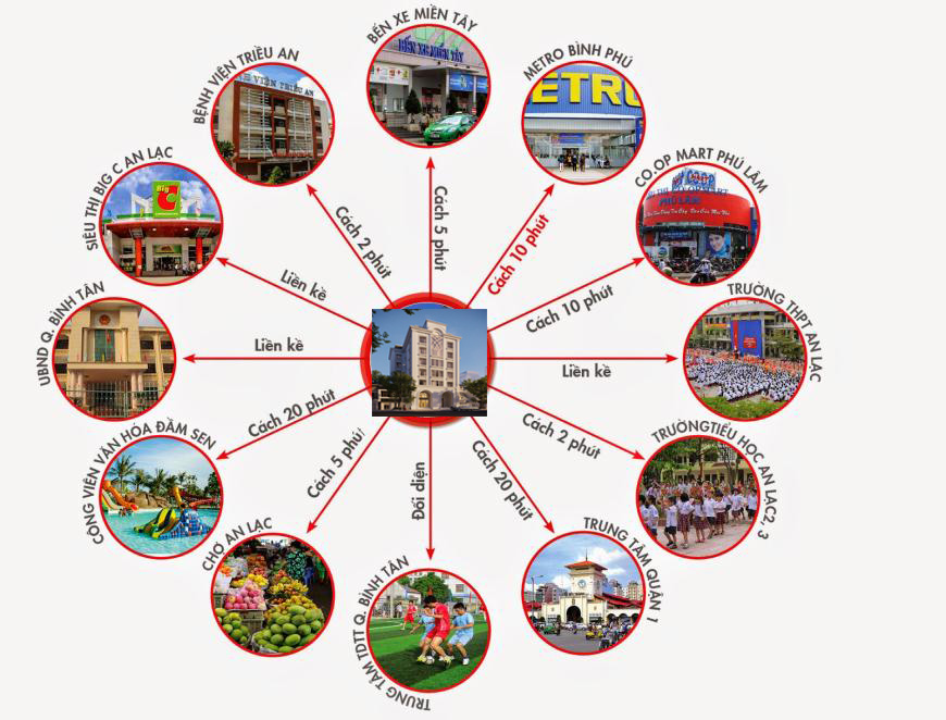 Từ vị trí dự án MD Home Building, cư dân di chuyển vô cùng thuận tiện về các quận lân cận như: Quận 6, Quận 5, Quận 11, huyện Bình Chánh và đặc biệt cách trung tâm thành phố chỉ 15 phút. Bên cạnh đó, cư dân chỉ cần di chuyển 5 phút để đến Bến Xe Miền Tây.