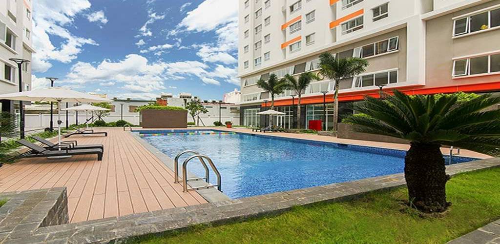 Hồ bơi ngoài trời ở khu vực trung tâm dự án dành cho cả người lớn và trẻ em.