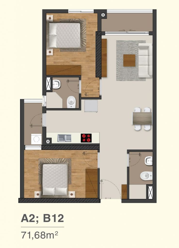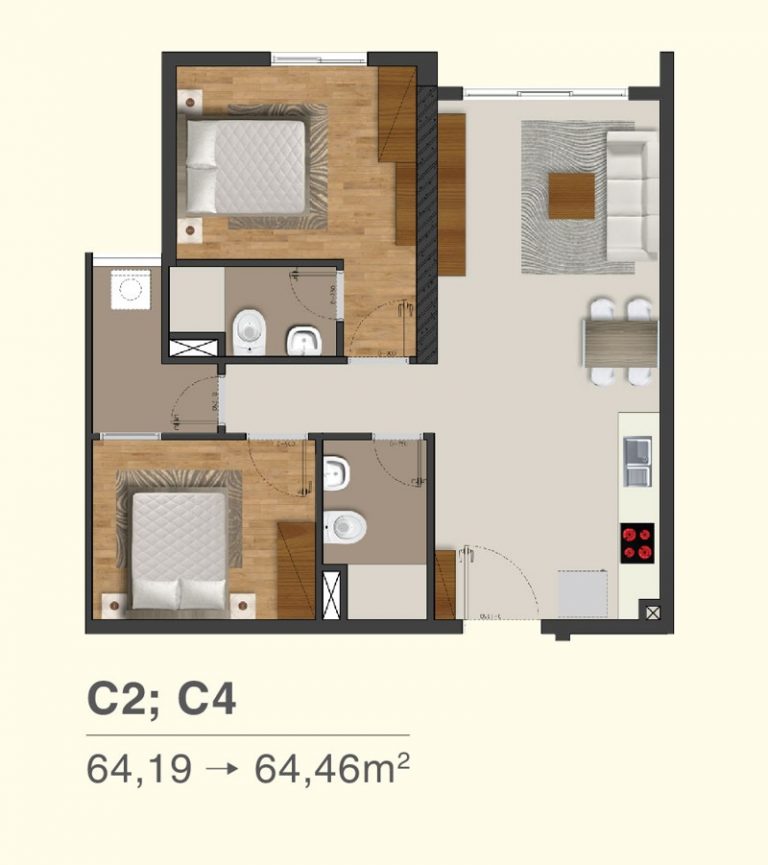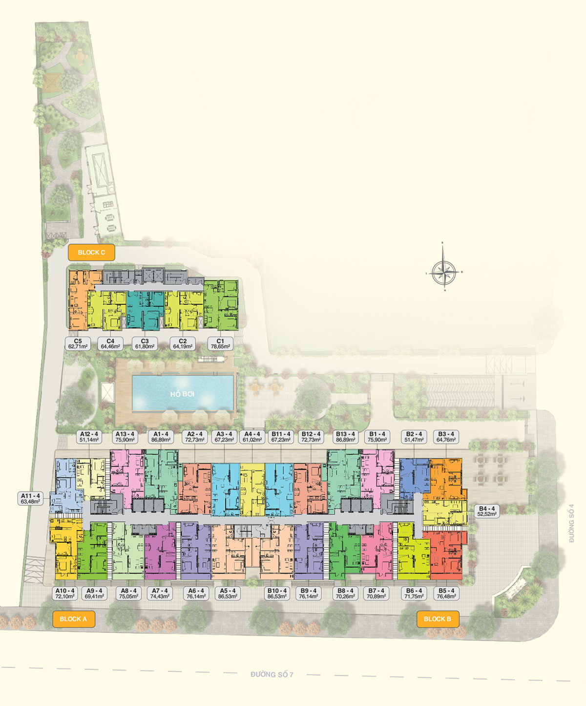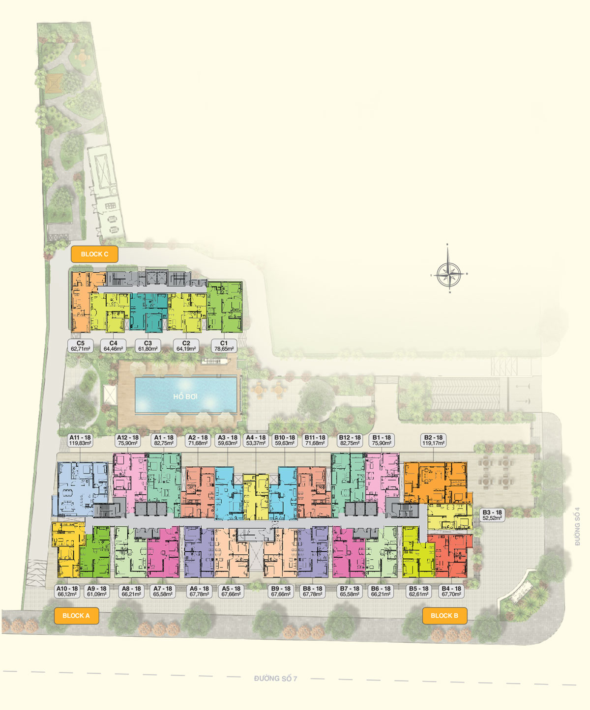 Diện tích căn hộ: 51,14m2 – 119,83m2.