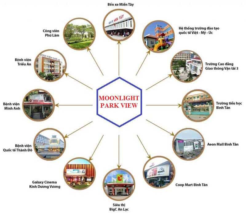 + Xung quanh là khu dân cư được quy hoạch một cách đồng bộ, chuẩn từ đầu, đầy đủ các dịch vụ tiện ích vì thế có thể đáp ứng được gần như toàn bộ những nhu cầu sống thường nhật của người dân với tiêu chuẩn cao cấp. Vị trí của Moonlight Park View Bình Tân nằm liền kề với khu y tế kỹ thuật cao, trung tâm khu Tên Lửa, hạt nhân của khu Tây Sài Gòn. Lê Đình Phong đánh giá giá trị của căn hộ Moonlight Park View sẽ có tốc độ tăng giá song song với các giai đoạn phát triển của khu vực.