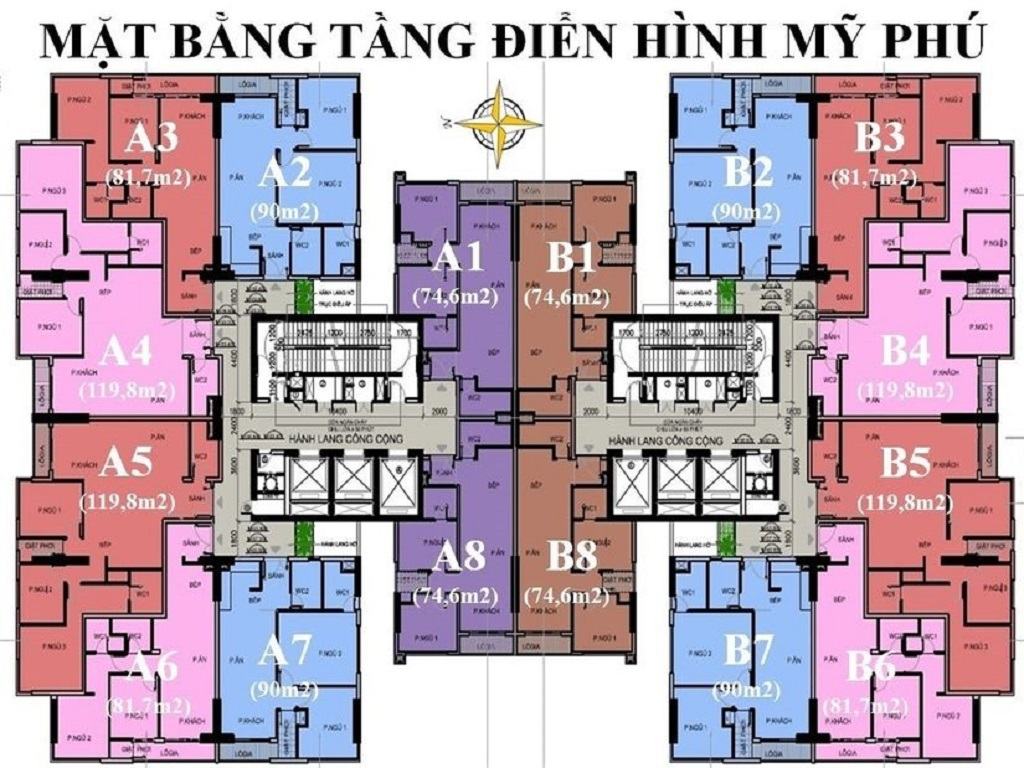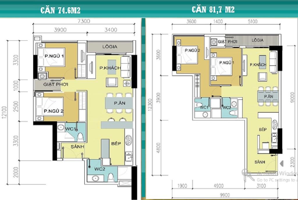 | Cơ cấu diện tích | 74.6m2 – 81.7m2 – 90m2 – 119.8m2 |