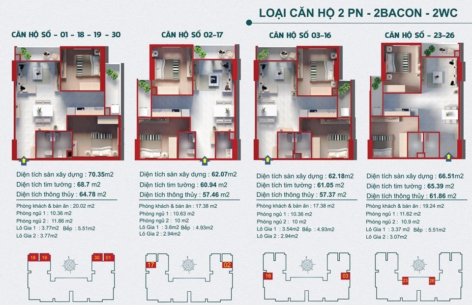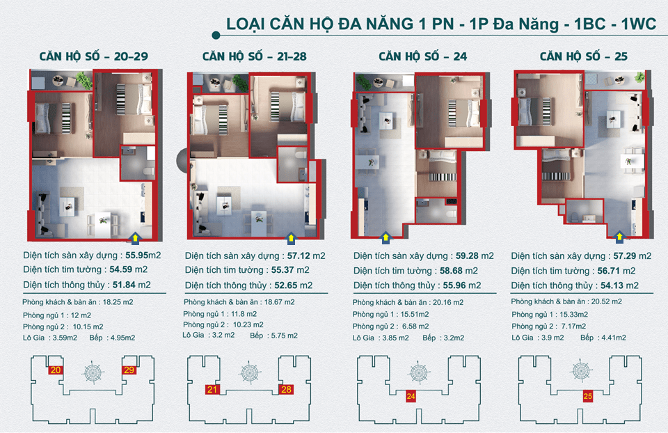 Heaven Riverview cung cấp cho khách hàng các căn hộ với thiết kế từ 1 – 2 phòng ngủ nên phù hợp với đối tượng khách hàng là những người độc thân, gia đình trẻ đang tìm kiếm một nơi an cư lý tưởng mới. Khách hàng có thể lựa chọn các căn hộ có diện tích vừa và nhỏ chỉ từ 51 – 68 m2.