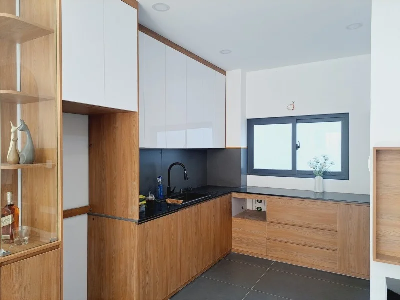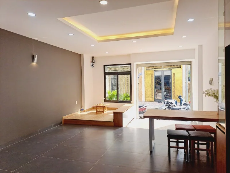 • Khu vực để xe cách biệt tam cấp sạch sẽ nhà, bếp rộng đẹp các chị em nội trợ rất thích, phòng khách có không gian trà đạo kiểu Nhật.
