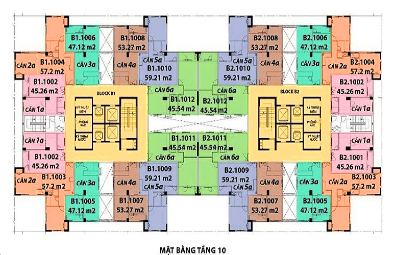 + Các tầng trên bố trí căn hộ với nhiều loại diện tích như: 45m2, 50 m2, 60m2,…